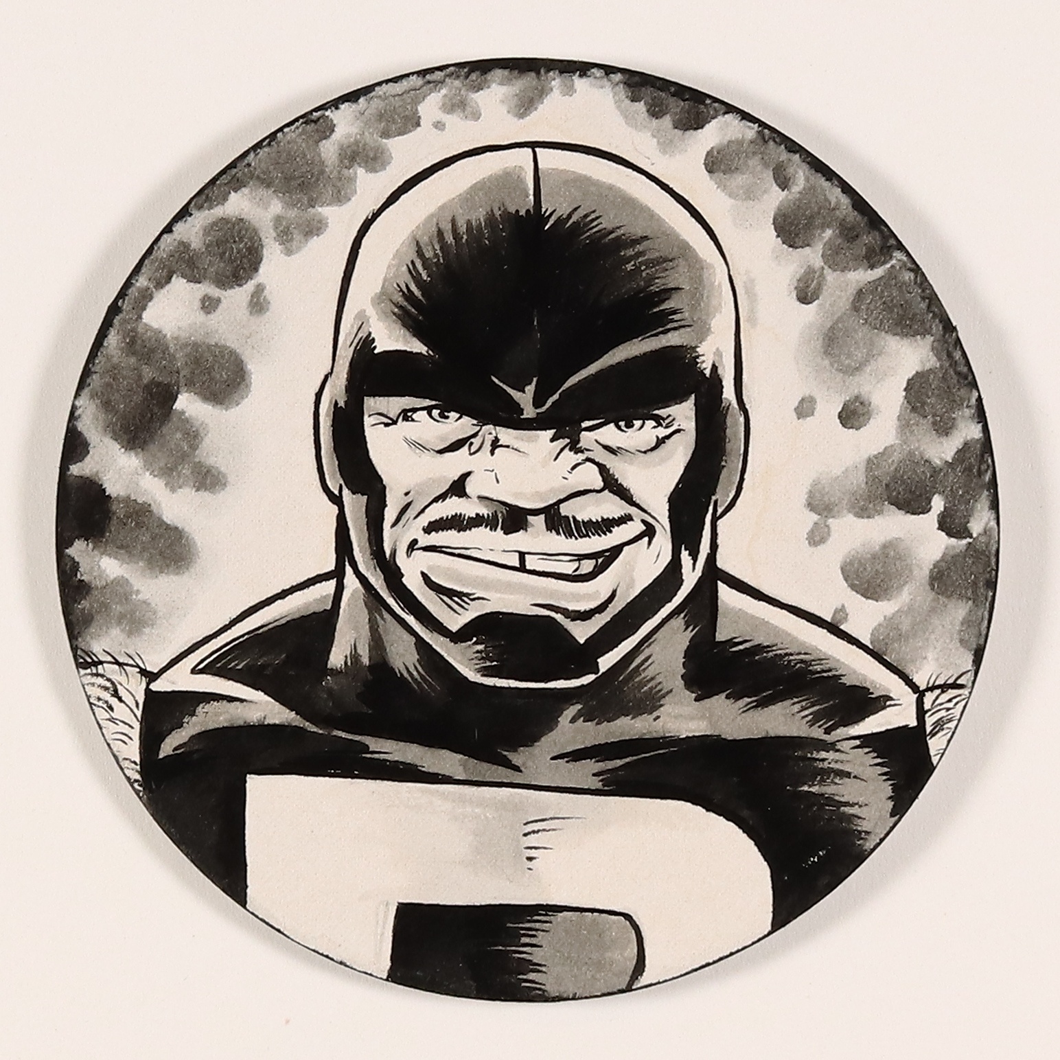 This sketch coaster of Alpha Flight's resident acrobat is a very cool. Whether you have it up for display or decide to use it for practical use this piece is sure to be a conversation starter. Pencil and pen on heavy coaster stock. Signed by the artist (backside). 4"
