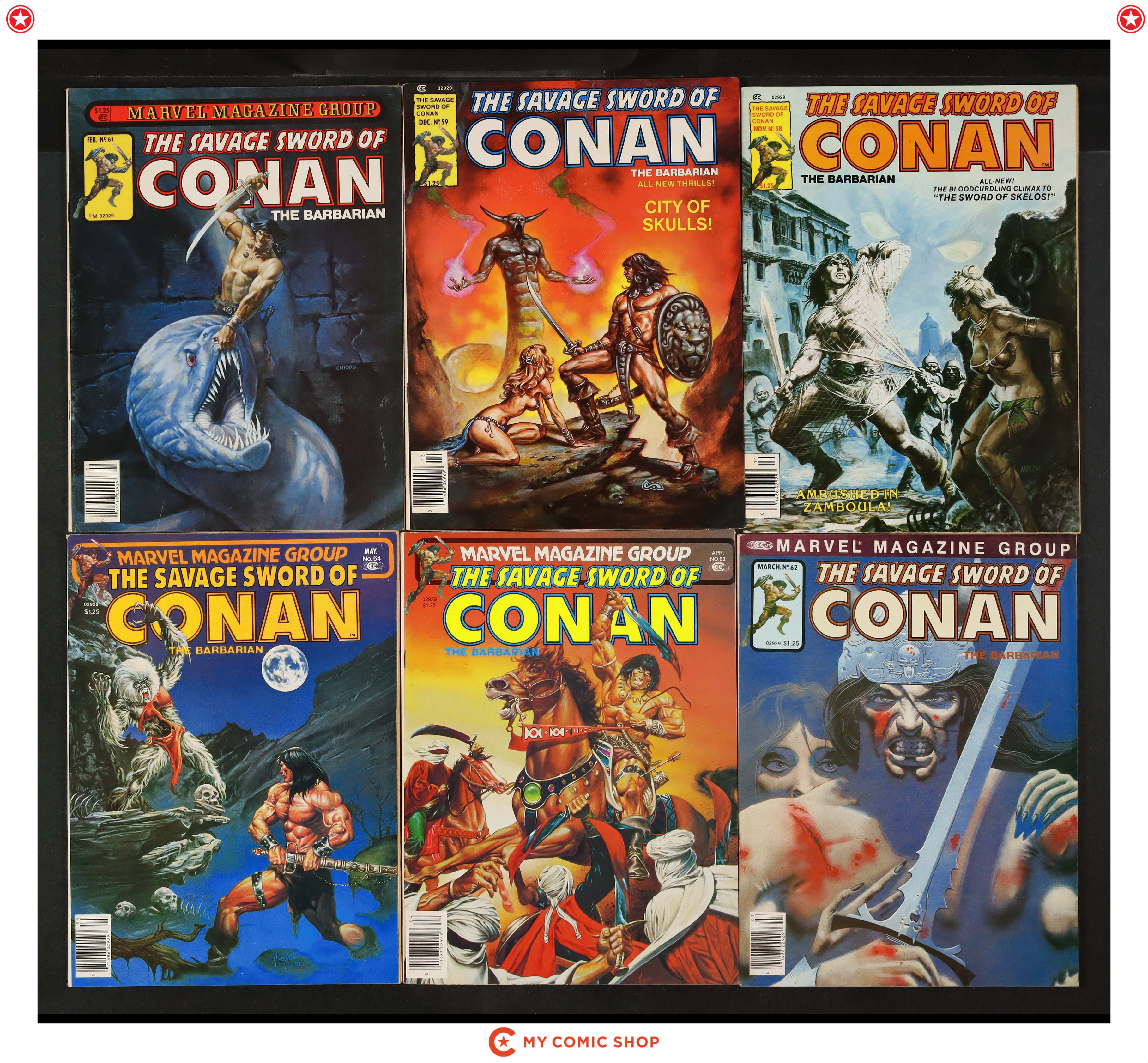 Issues 58, 59, 61-66, and 68 of Savage Sword of Conan (1974 Marvel). Most will grade in the FN/VF to FN range.