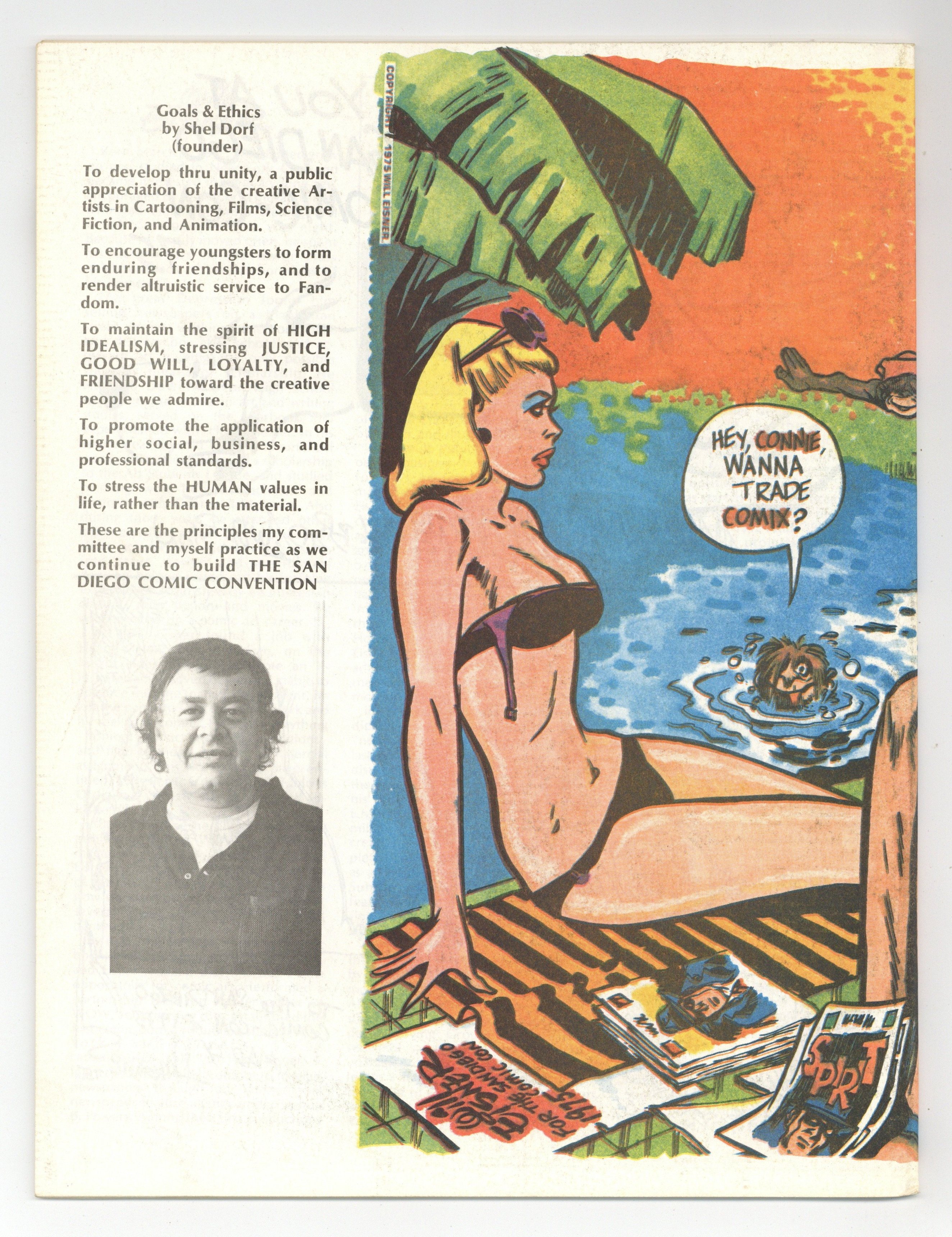 Ends Mar 23 9:17 PM CST Bid History 4 bids Current Bid $13 Your Secret Max Bid If you'd like to bid, please log in or register. 1975. Wraparound cover by Will Eisner. Bios of Dick Moores, Robert Bloch, George Clayton Johnson, Gil Kane, Chuck Norris, Steranko, George Pal, Barry Windsor-Smith, Jim Harmon, Vaughn Bode, Don Glut, and Will Eisner. Illustrations by Harvey Kurtzman, Marie Severin (Stan Lee portrait), Gil Kane, Charles Schulz, Steranko, Bill Stout, Carl Barks, John Romita Sr., Barry Windsor-Smith, Russ Manning (full-page tribute to Edgar Rice Burroughs), Dave Stevens (inks), John Pound, Vaughn Bode, Jesse Santos, C.C. Beck, Milton Caniff, Jack Kirby, Brad Anderson (Marmaduke), Sergio Aragones, and others. Softcover, 8 1/2 x 10 1/2-in., 40 pages, B&W.
