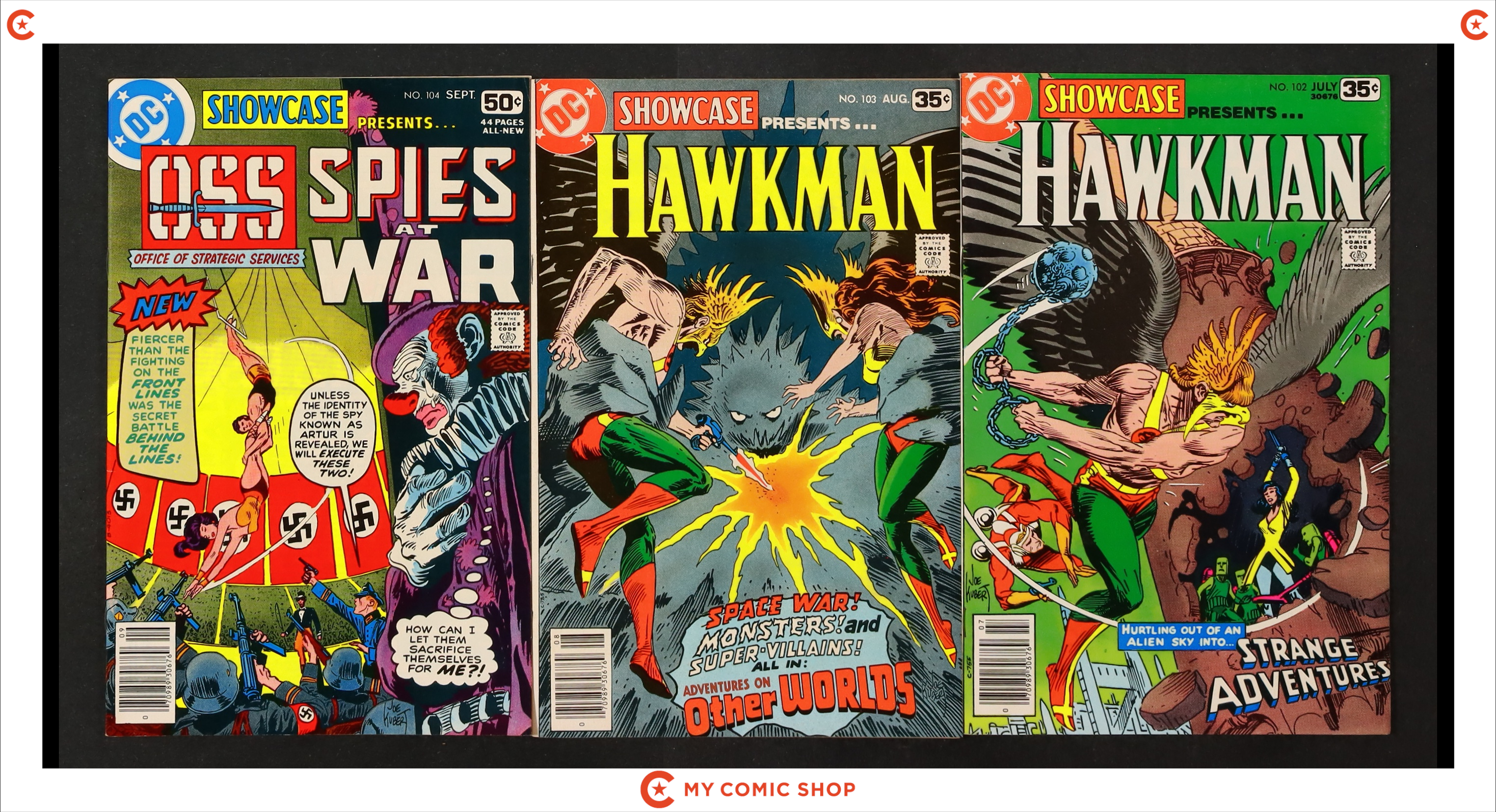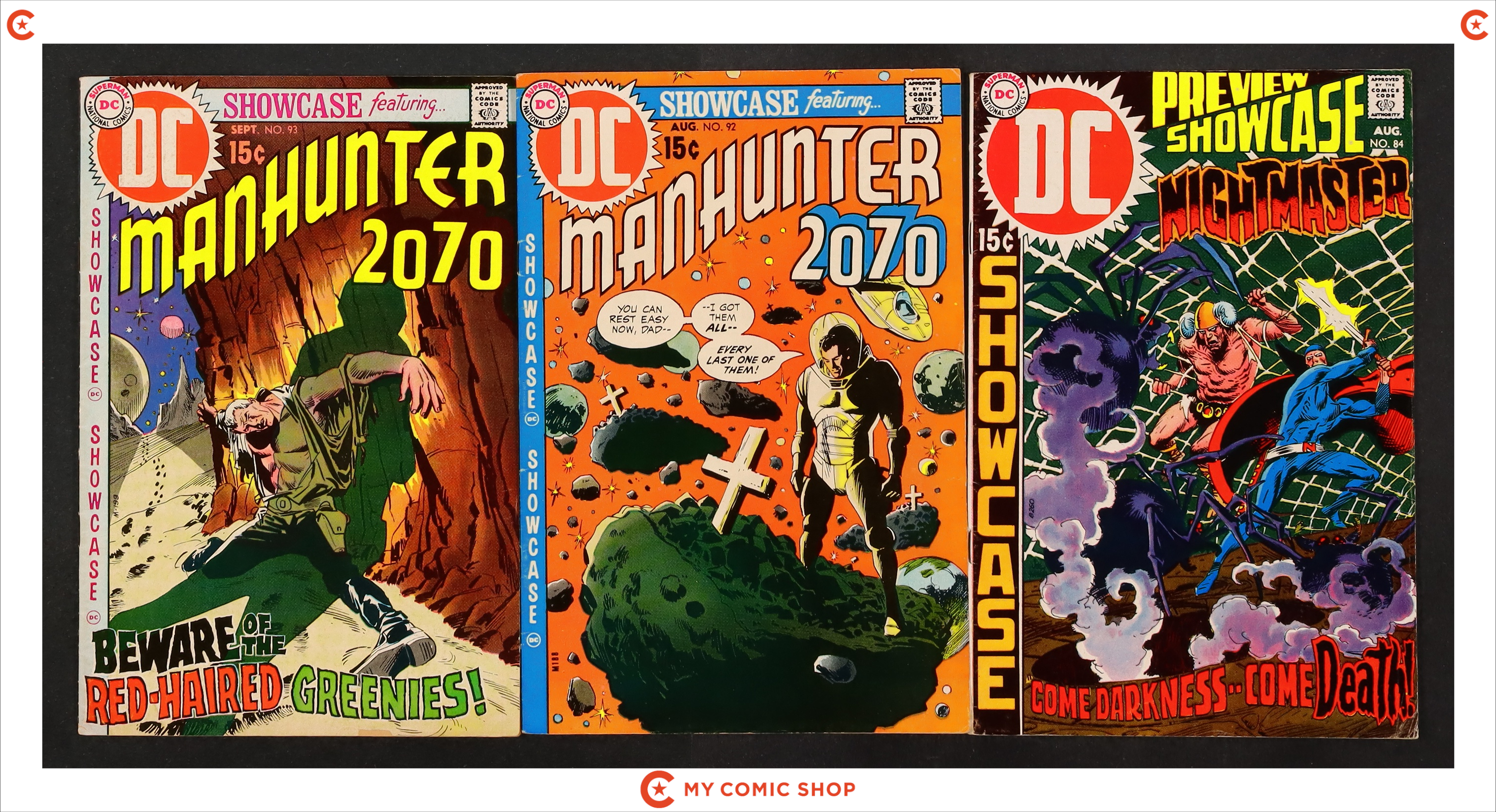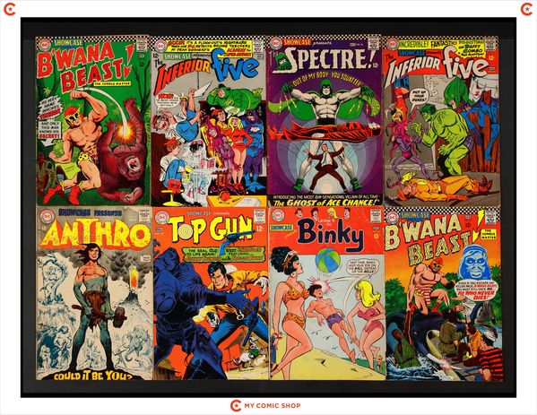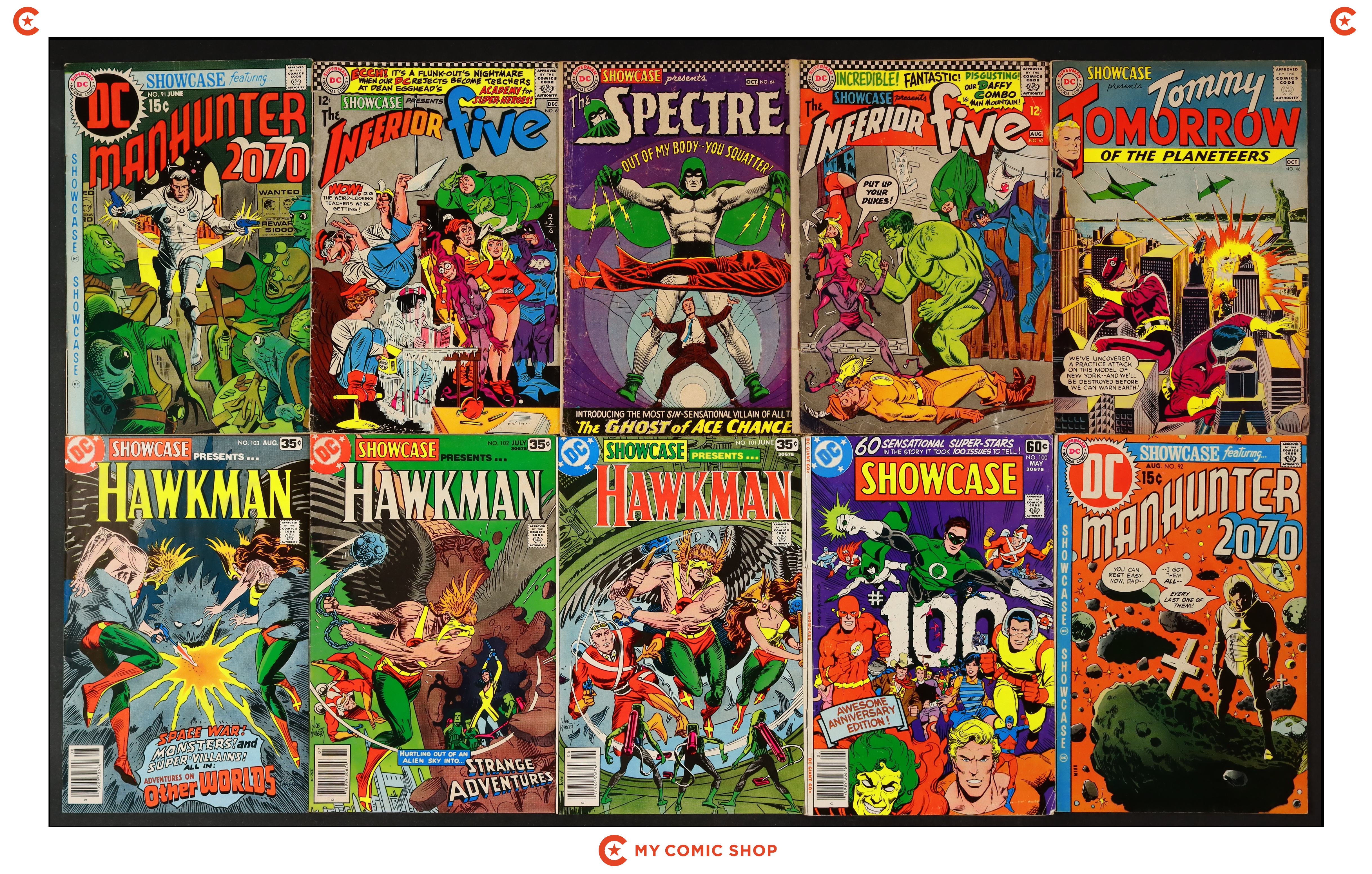 Issues 46, 63-65, 91, 92, 100-103 of Showcase (1956-1978). Most will grade in the GD- to VG/FN range, with #101 grading at VF.