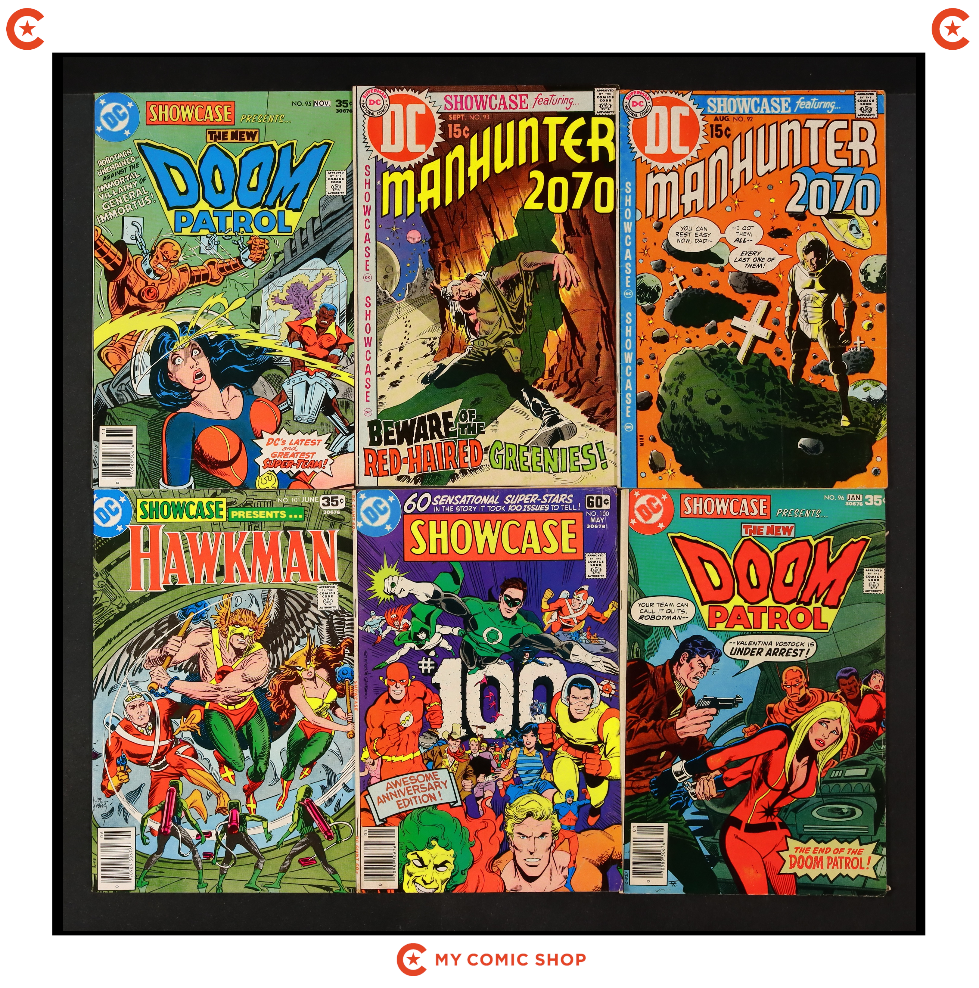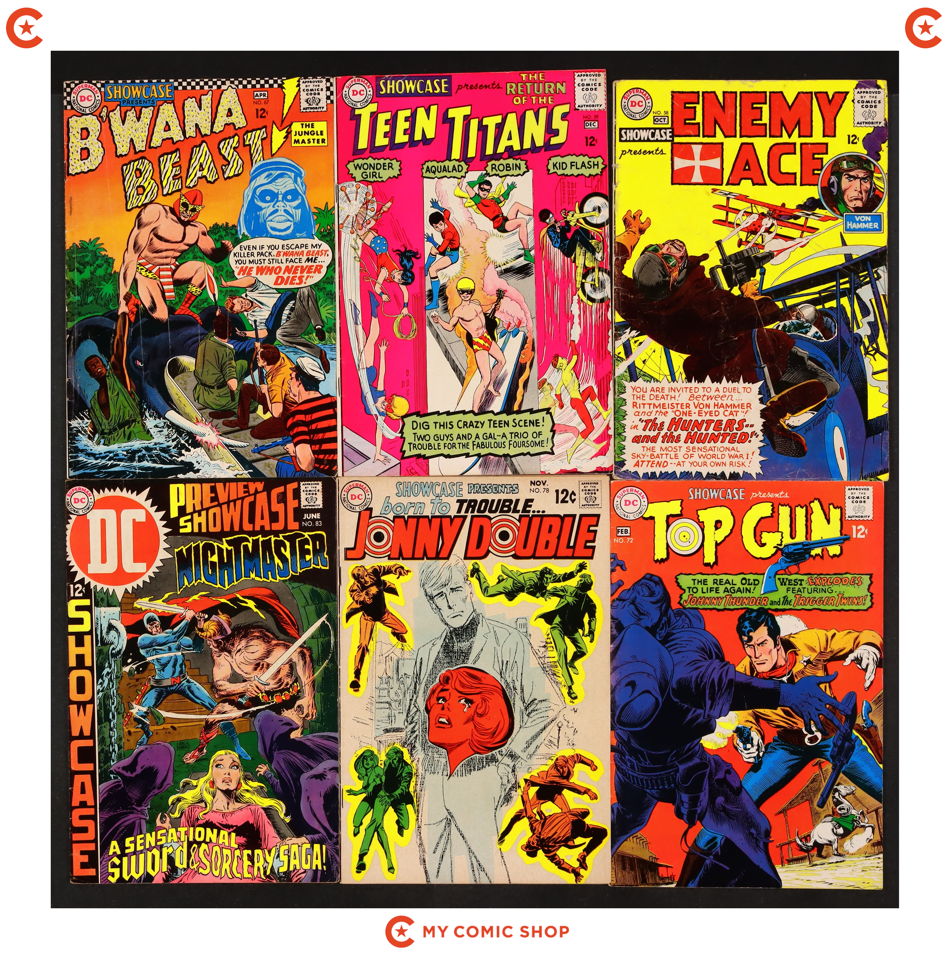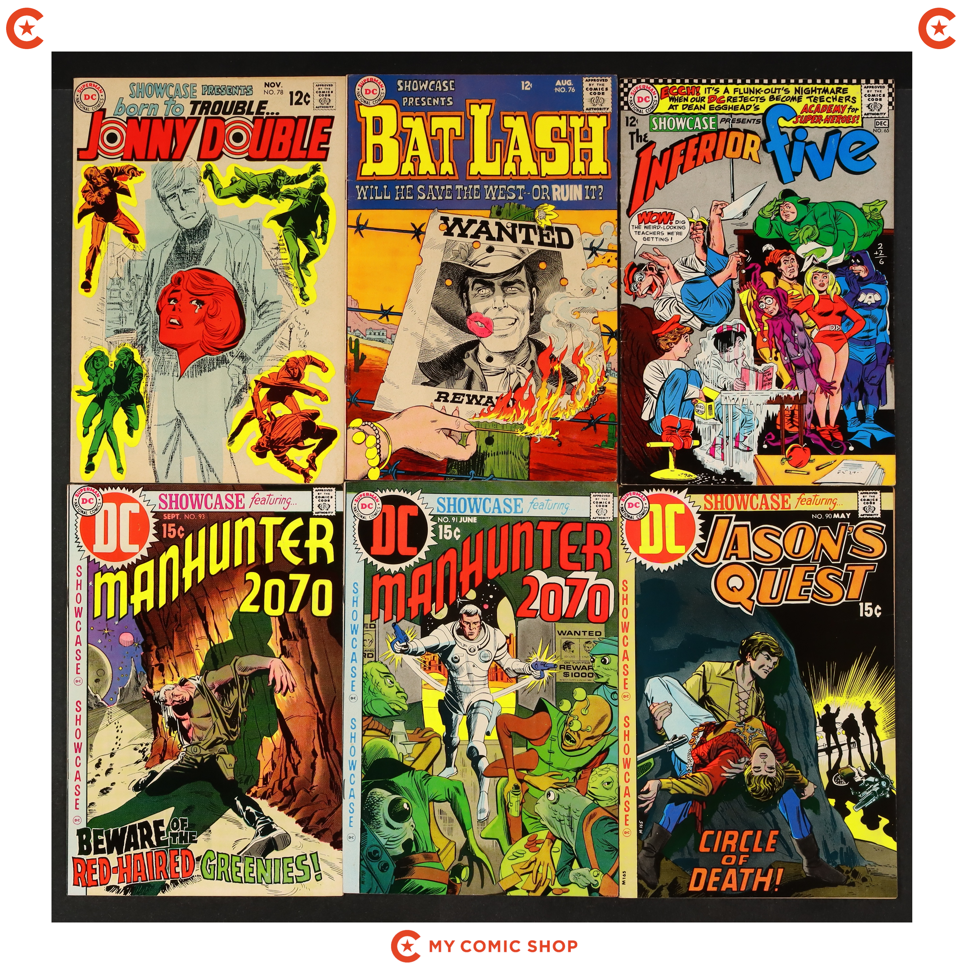 Issues 65, 76, 78, 90, 91, and 93 of Showcase (1956-1978). Most will grade in the FN range.