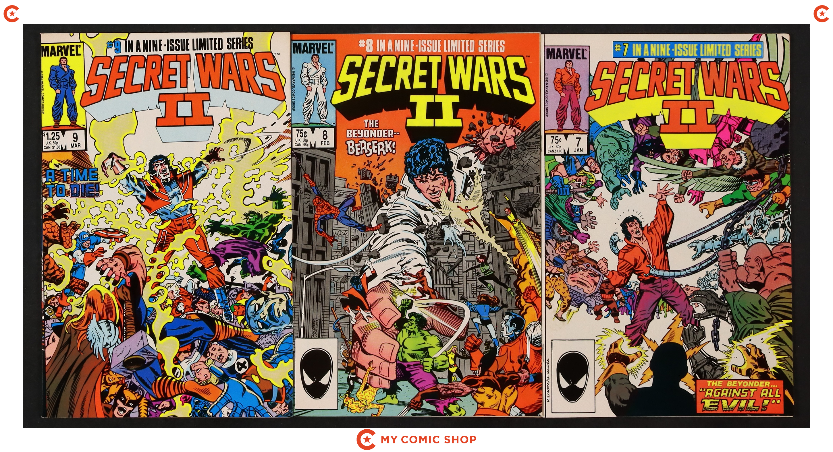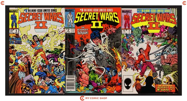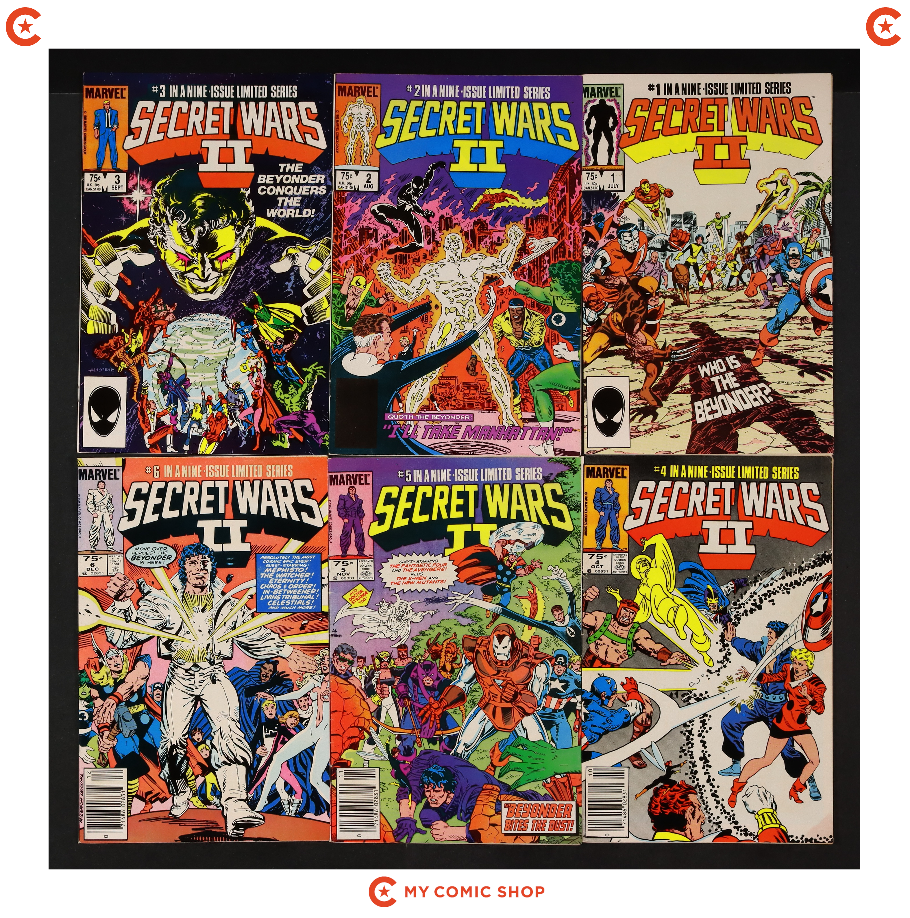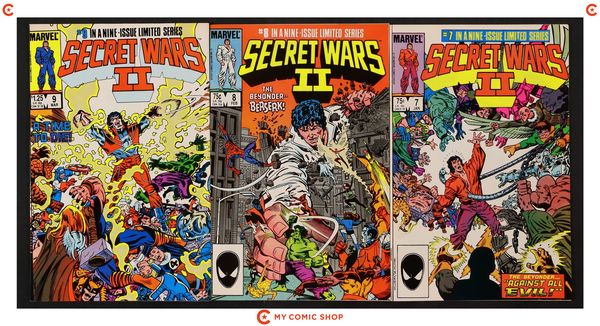 Issues 1D, 2D, 3D, 4-9 of Secret Wars II (1985 Marvel). Most will grade in the FN to VF range.