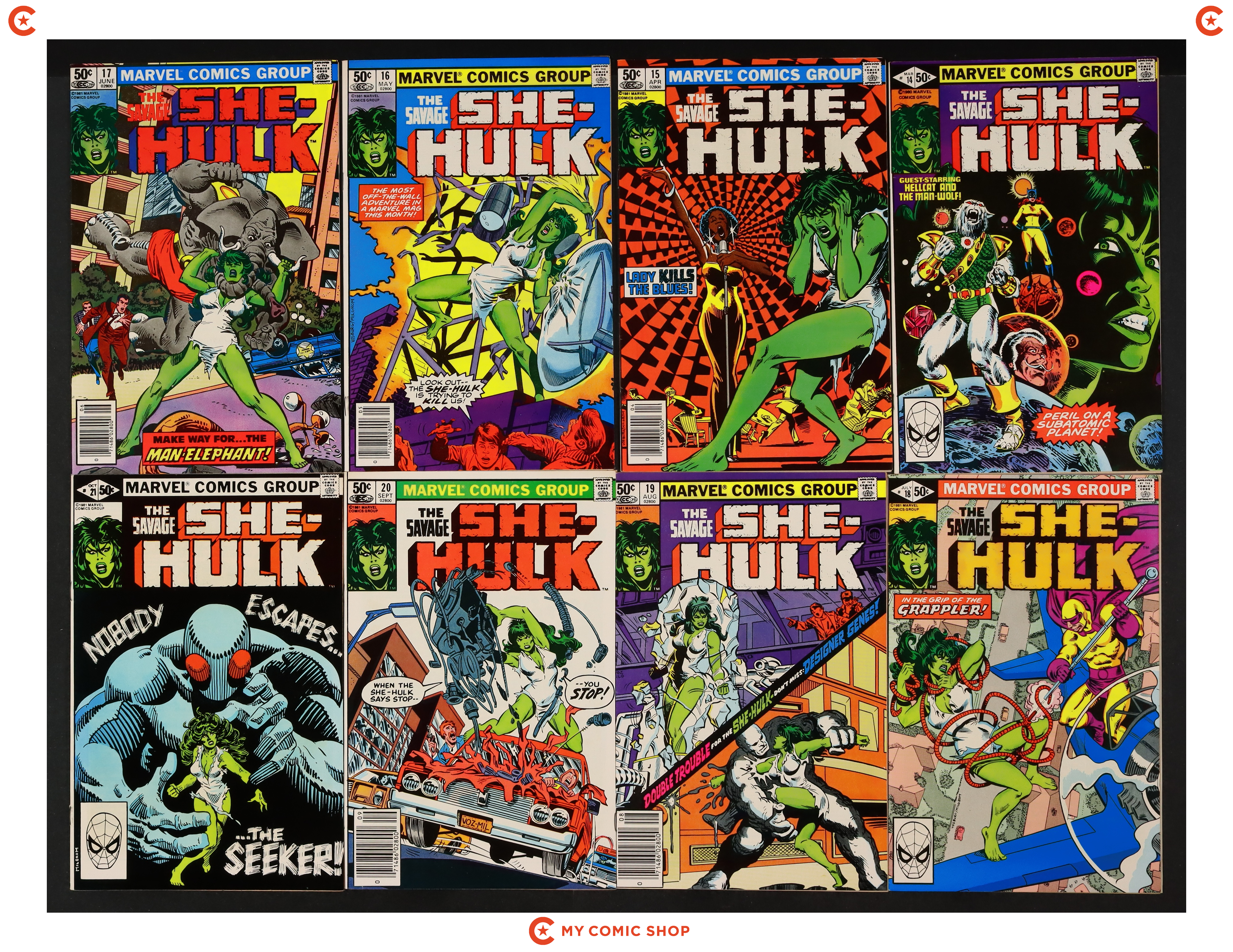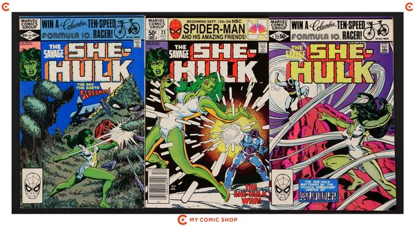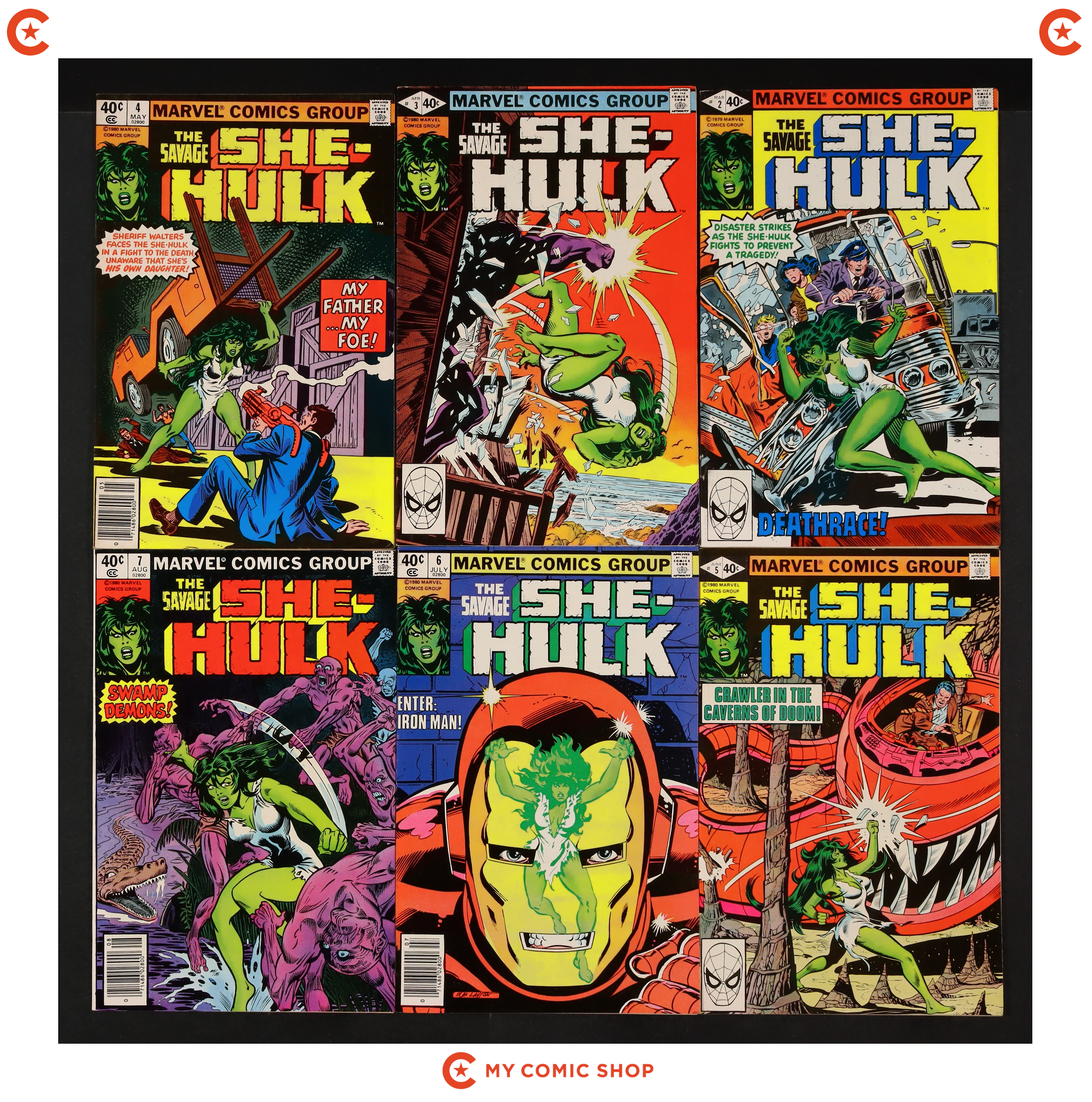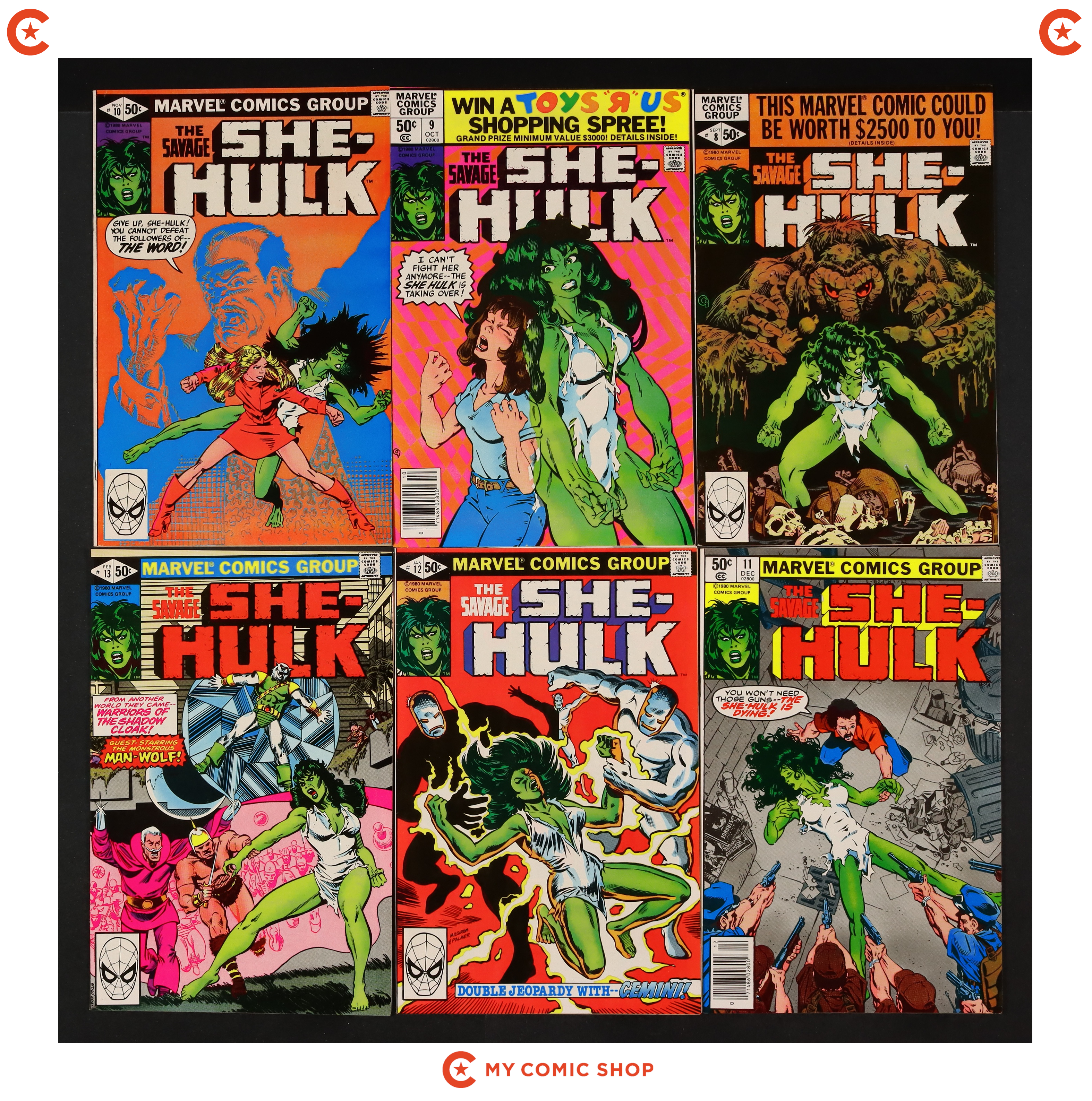 Issues 2D, 3, 4, 5D, 6N, 7, 8, 9N, 10, 11N, 12, 13 of Savage She-Hulk (1980). Most will grade in the FN to VF range.