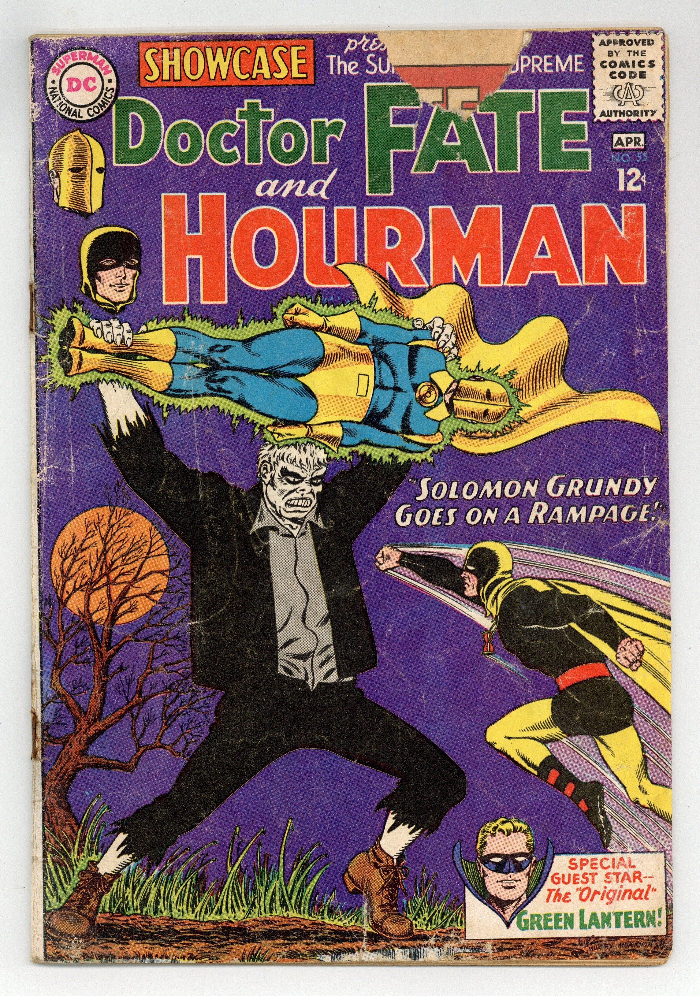 Ends Dec 22 9:16 PM CST Bid History 6 bids Current Bid $23 Your Secret Max Bid If you'd like to bid, please log in or register. Cover by Murphy Anderson. 1st solo Golden Age Green Lantern in Silver Age (pre-dates Green Lantern 40), Doctor Fate, and Hourman star in "Solomon Grundy Goes on a Rampage!", script by Gardner Fox, art by Murphy Anderson; When Solomon Grundy last fought Green Lantern Alan Scott, Green Lantern encased Solomon Grundy in an emerald sphere prison floating above Earth; Years later, the sphere has now crash landed back on Earth, and Solomon Grundy has emerged to get his revenge on Green Lantern; Solomon Grundy instinctually heads back to his home of Slaughter Swamp, which at this point is bordering the Tyler Chemical Company plant; At the Tower of Fate, Kent Nelson is warned that there is trouble by his crystal ball; Seeing the source of the trouble to be Slaughter Swamp, Nelson becomes Dr. Fate; Hourman comes across Solomon Grundy in Slaughter Swamp; Hourman pops his Miraclo pill, then attacks Solomon Grundy. One-page text feature tells the origins of Dr. Fate and Hourman. 36 Pages, Full Color. Cover price $0.12.