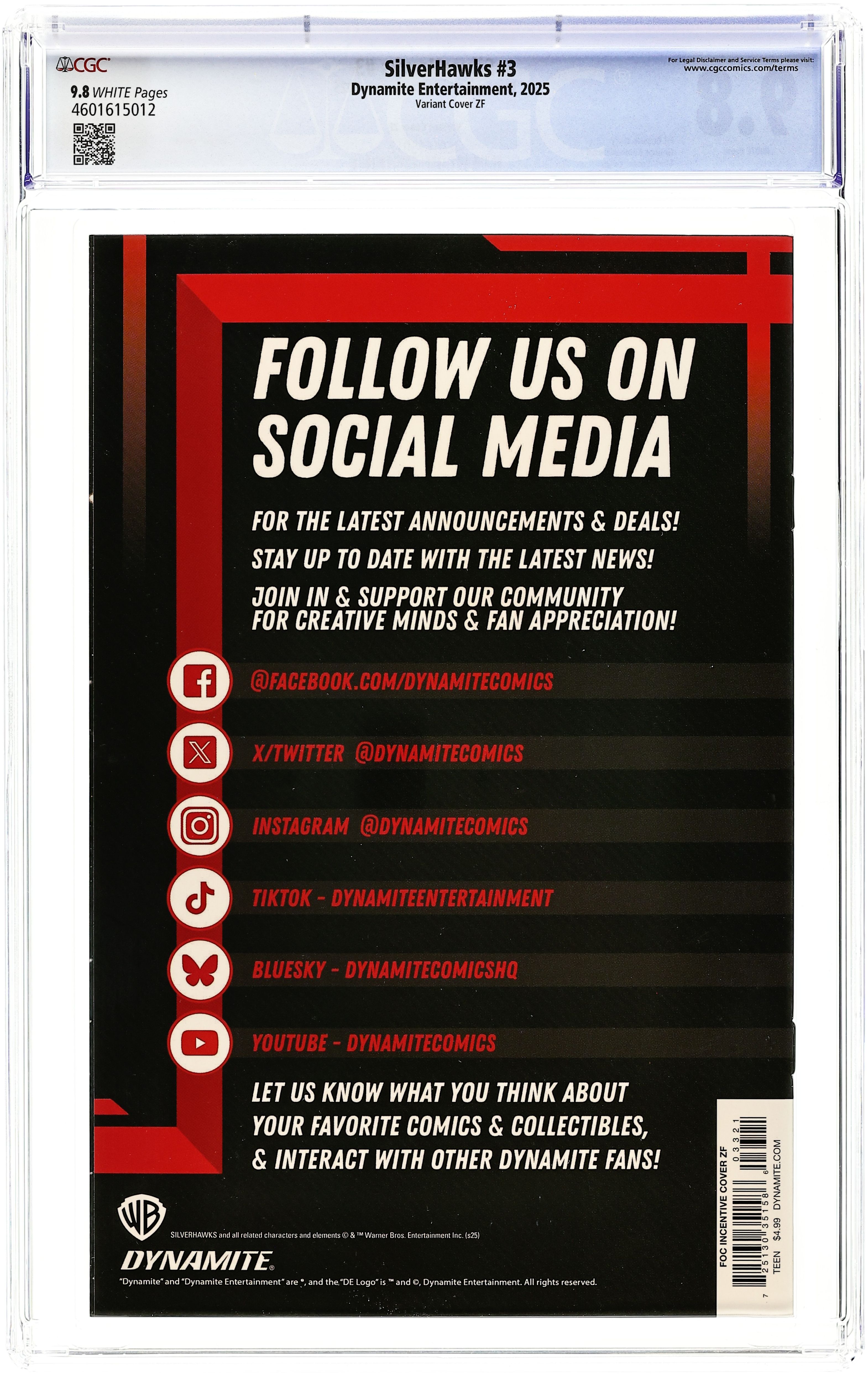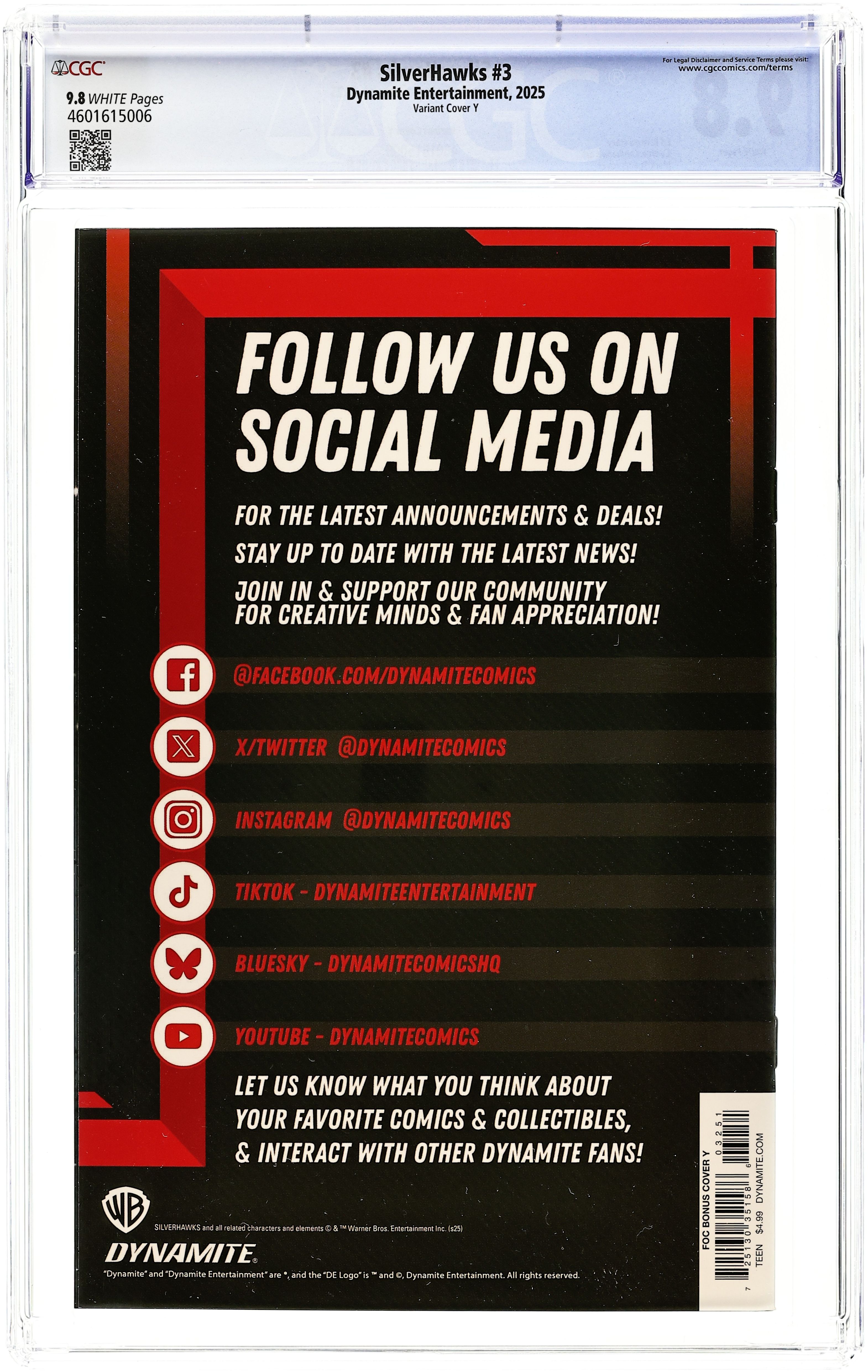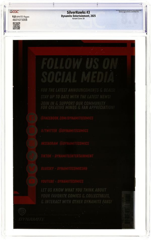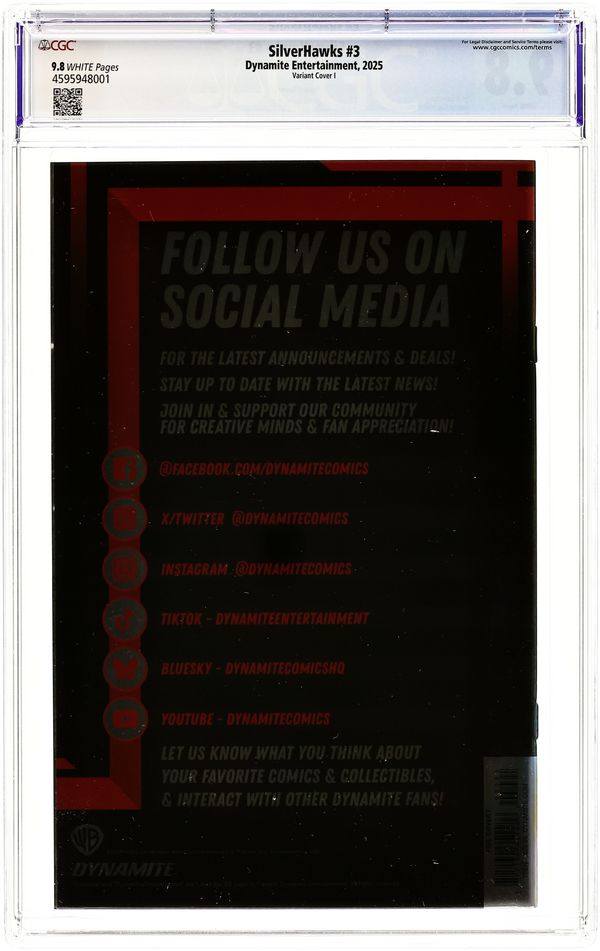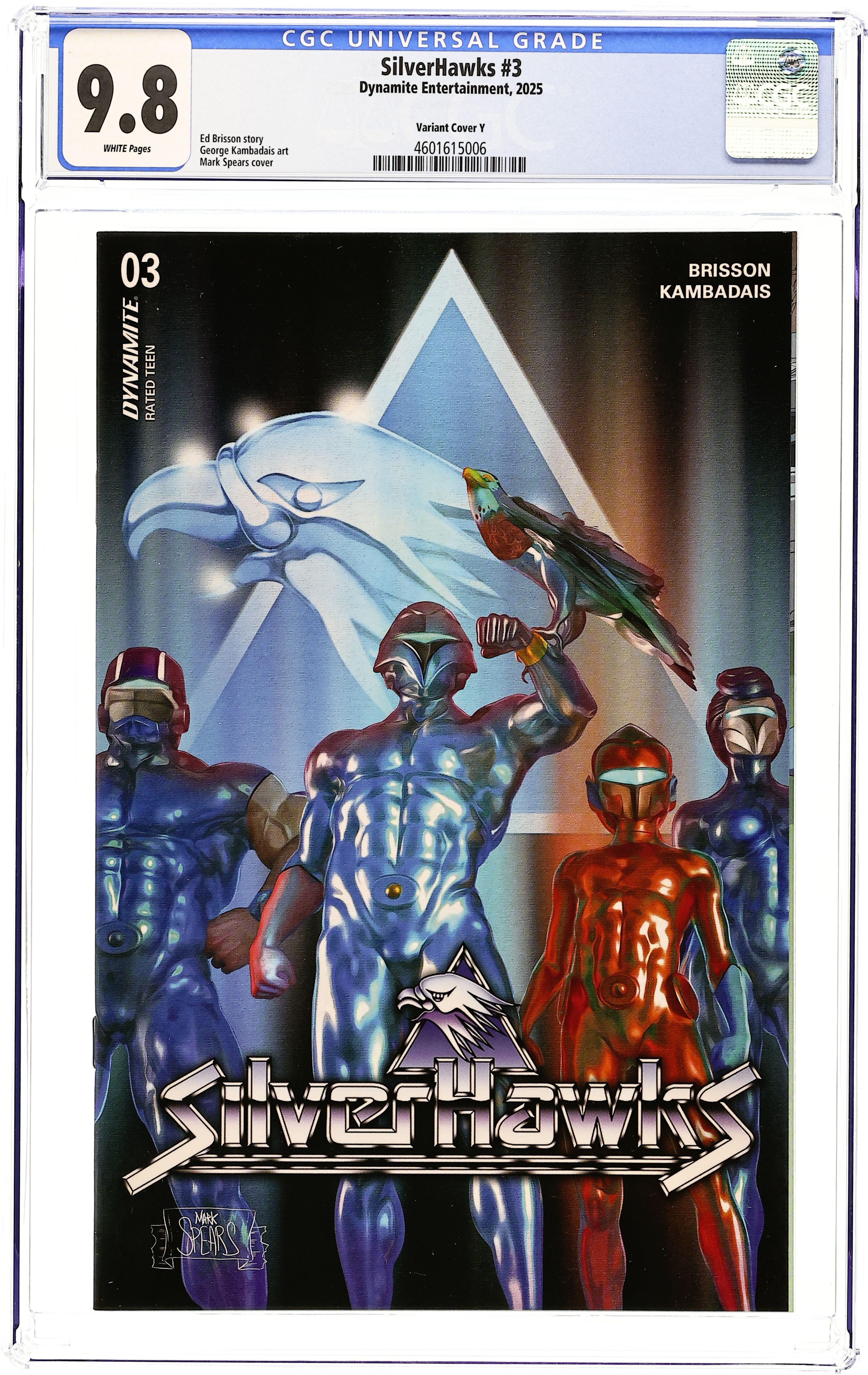 Published 2025 (est.) by Dynamite Entertainment.Silverhawks (2025 Dynamite) 3Y CGC 9.8 Spears Variant