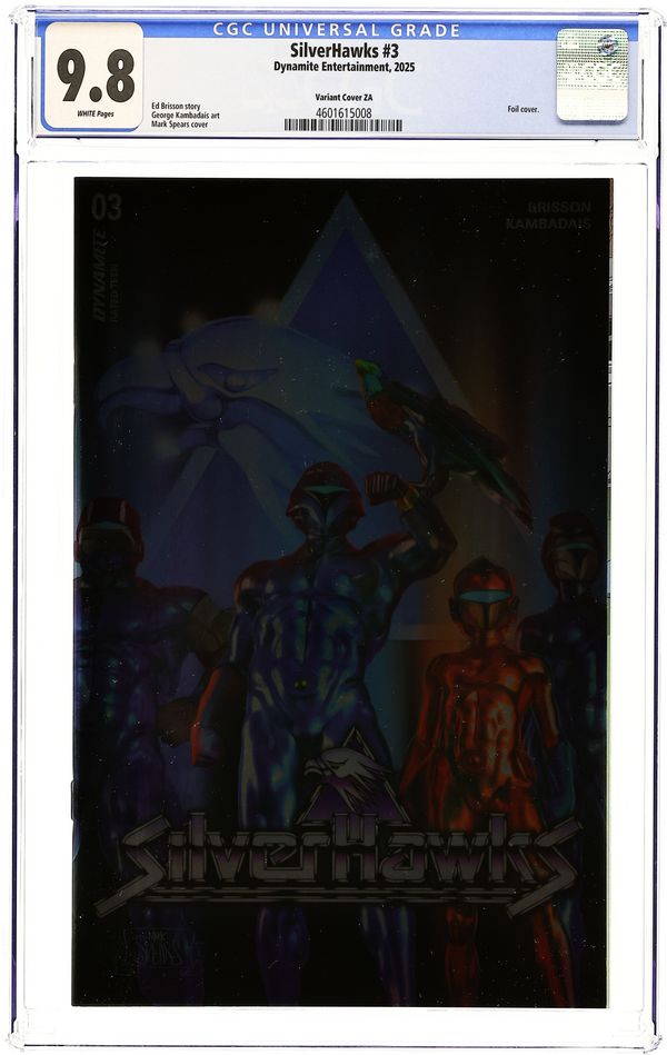 Published 2025 (est.) by Dynamite Entertainment.Silverhawks (2025 Dynamite) 3ZA CGC 9.8 Spears Foil 1:10 Variant