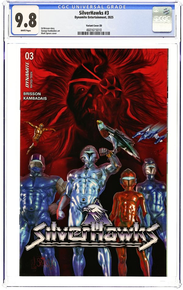 Published 2025 (est.) by Dynamite Entertainment.Silverhawks (2025 Dynamite) 3ZD CGC 9.8 Spears 1:15 Variant