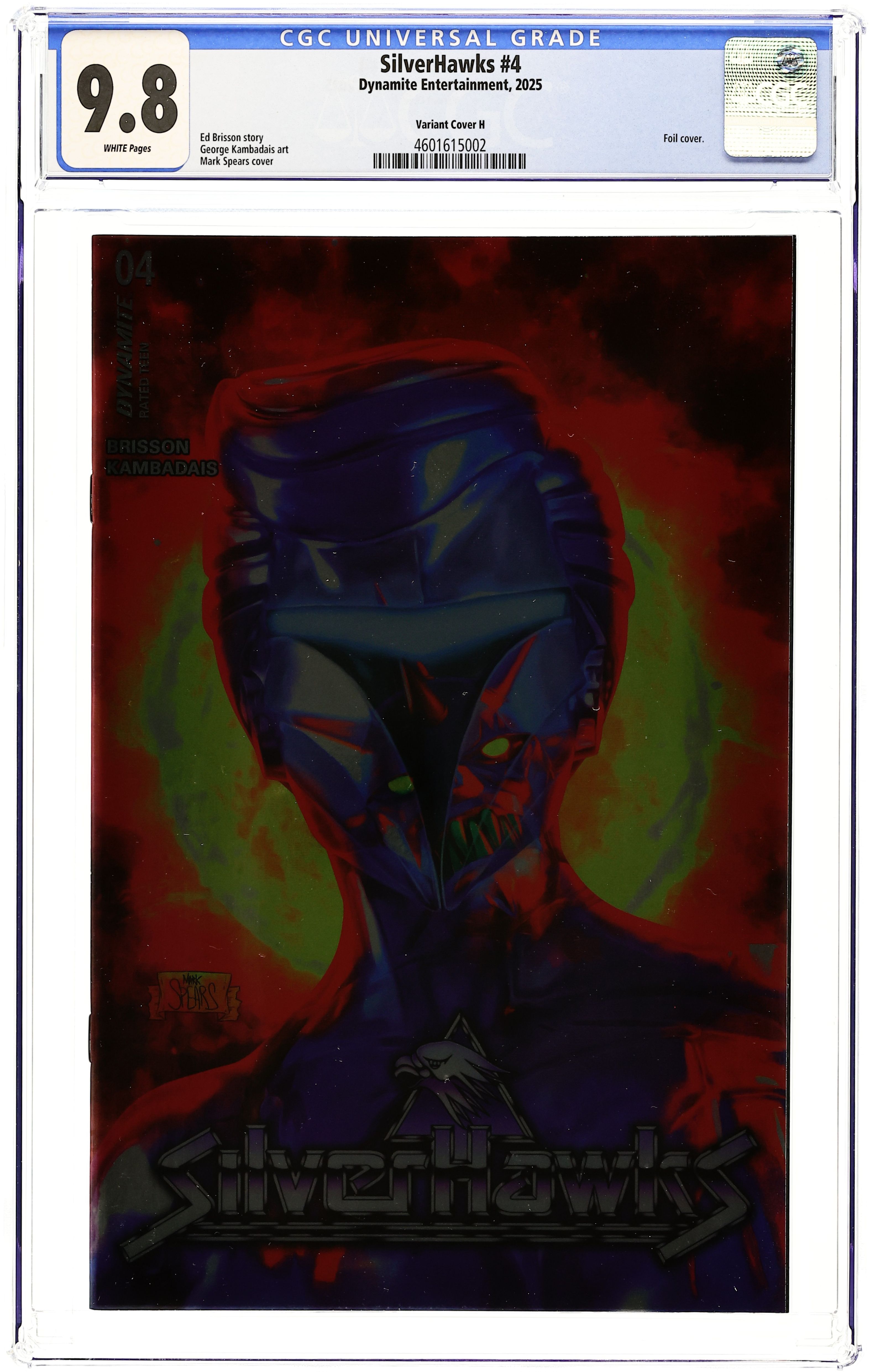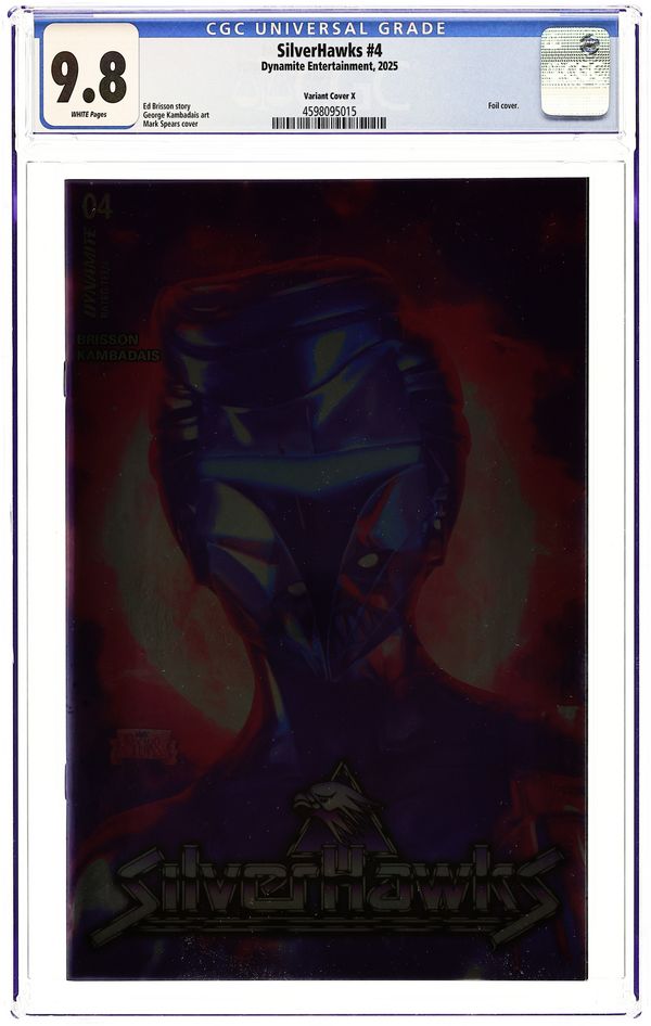 Published May 2025 by Dynamite Entertainment.Silverhawks (2025 Dynamite) 4H CGC 9.8 Spears Foil Variant