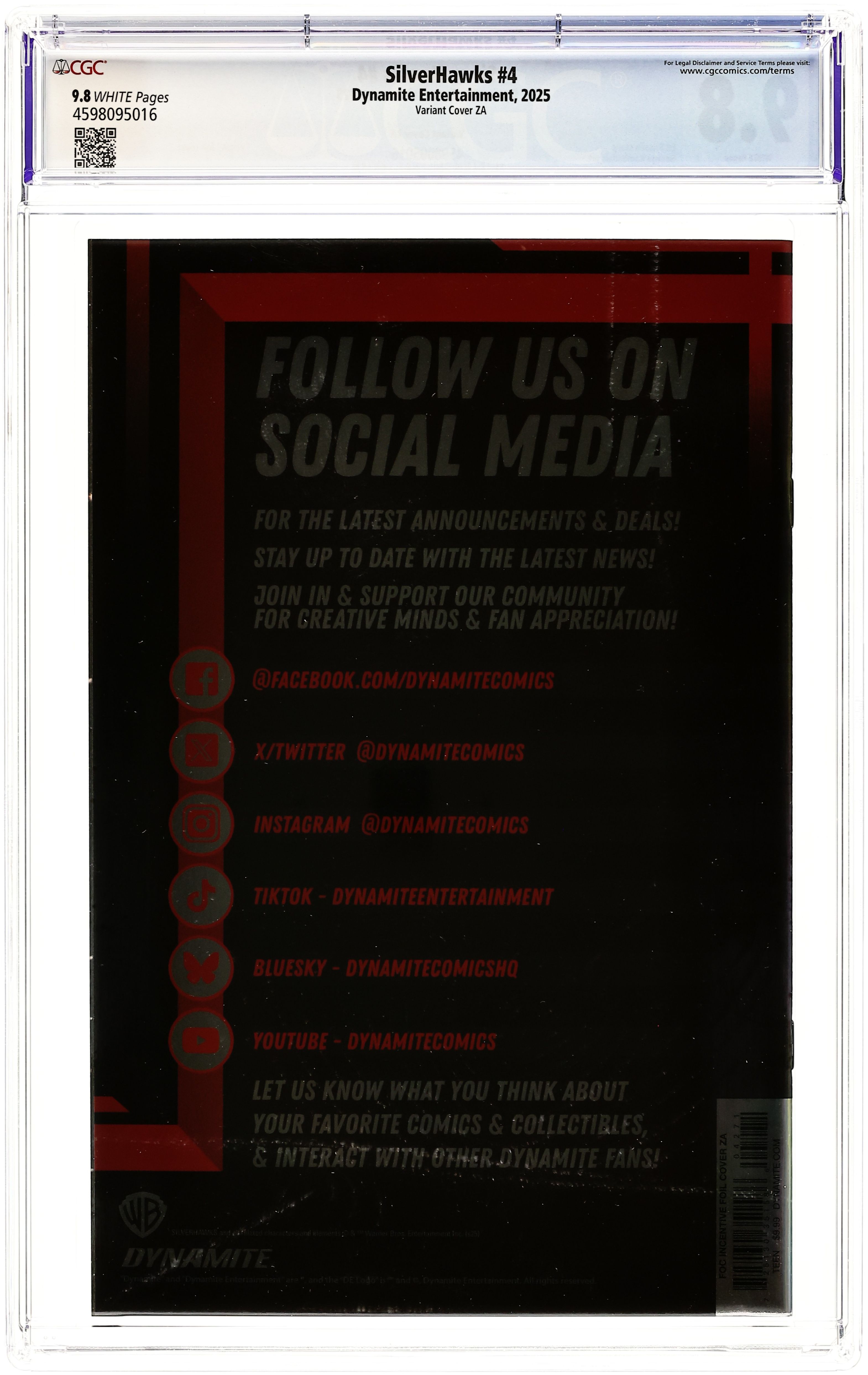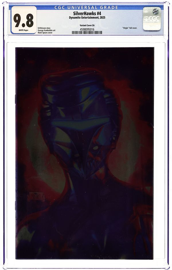 Published 2025 (est.) by Dynamite Entertainment.Silverhawks (2025 Dynamite) 4ZA CGC 9.8 Spears Foil Virgin Purple 1:10 Variant