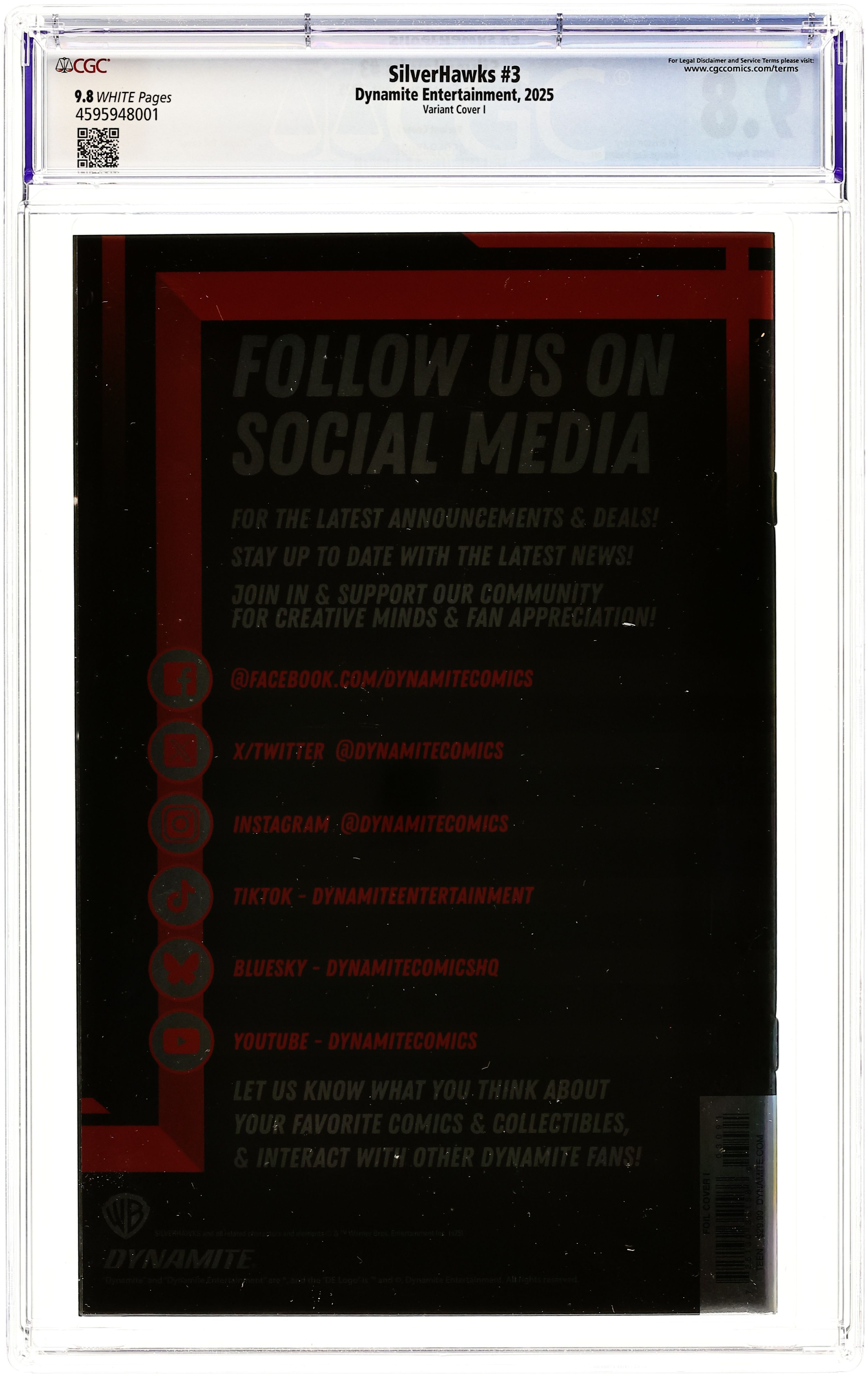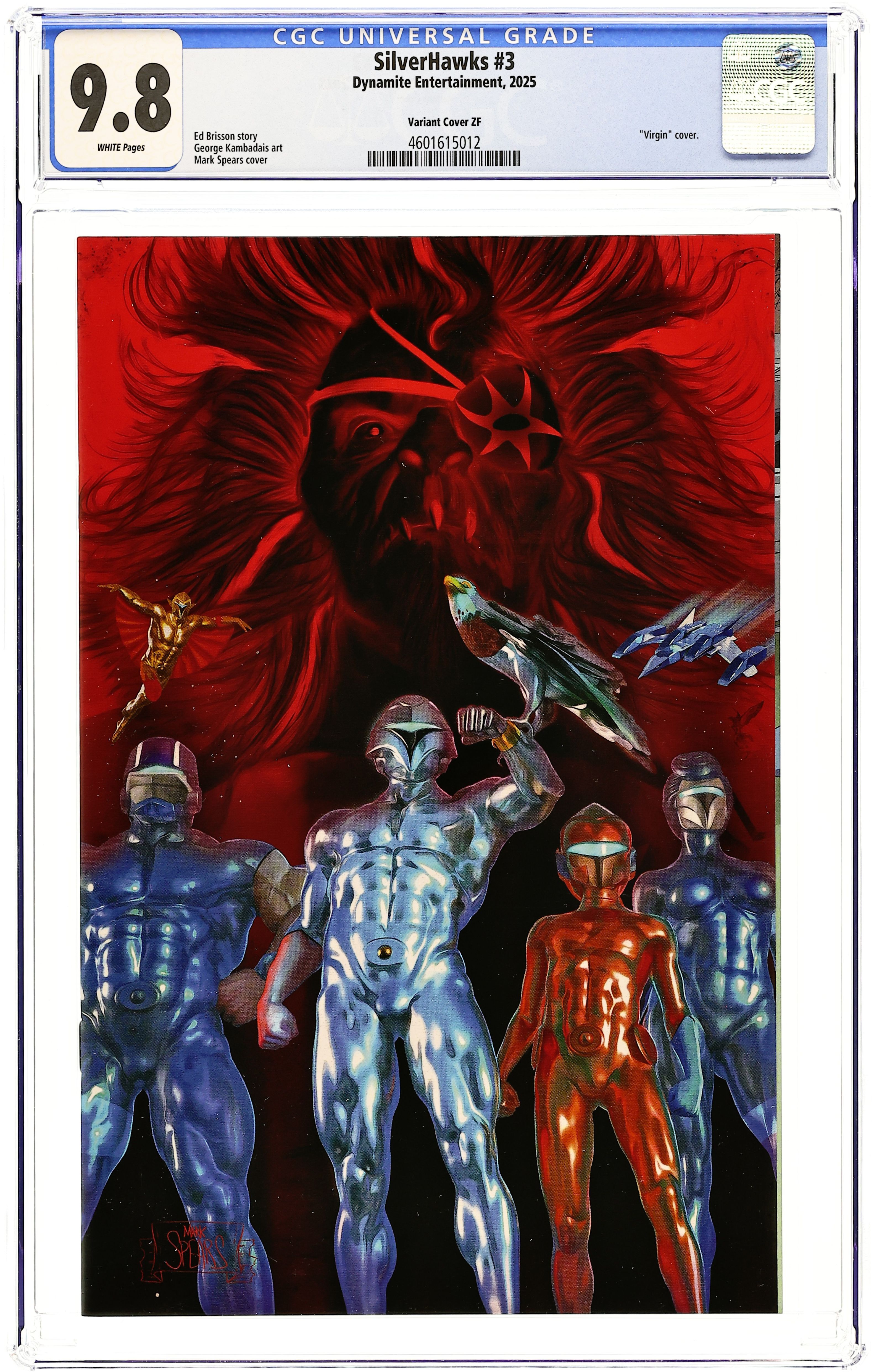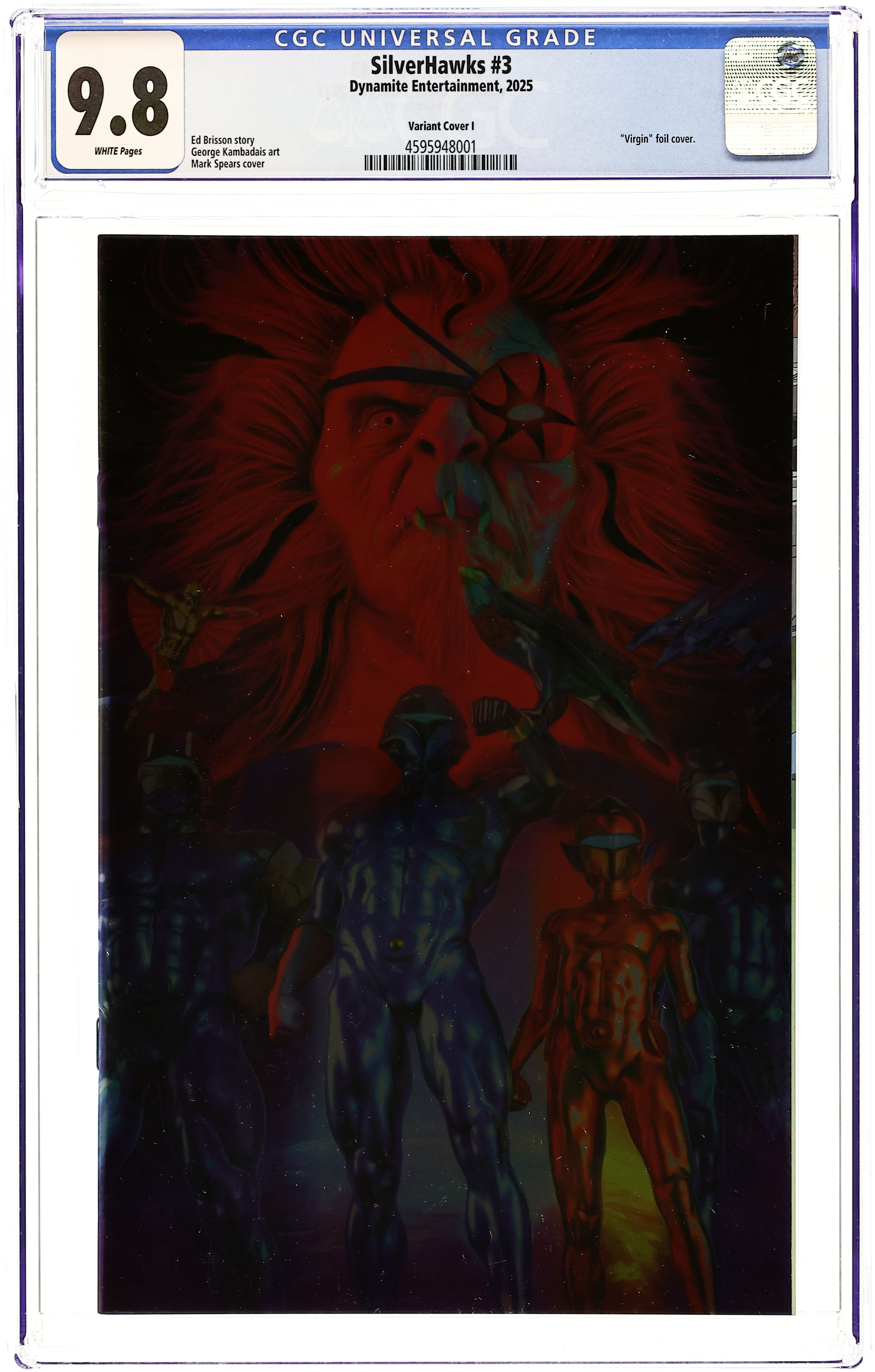 Published May 2025 by Dynamite Entertainment.Silverhawks (2025 Dynamite) 3I CGC 9.8 Spears Foil Virgin Variant