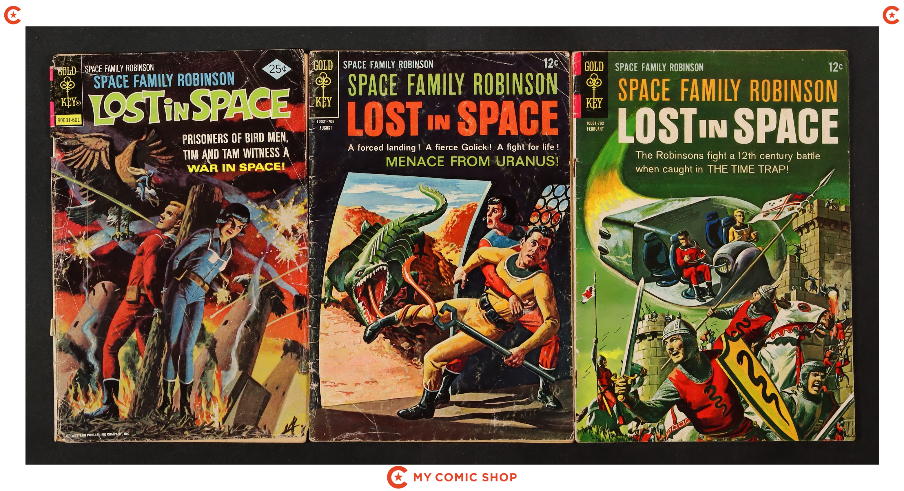 Issues 20, 23, and 46 of Space Family Robinson (1962 Gold Key). Most will grade in the GD range.
