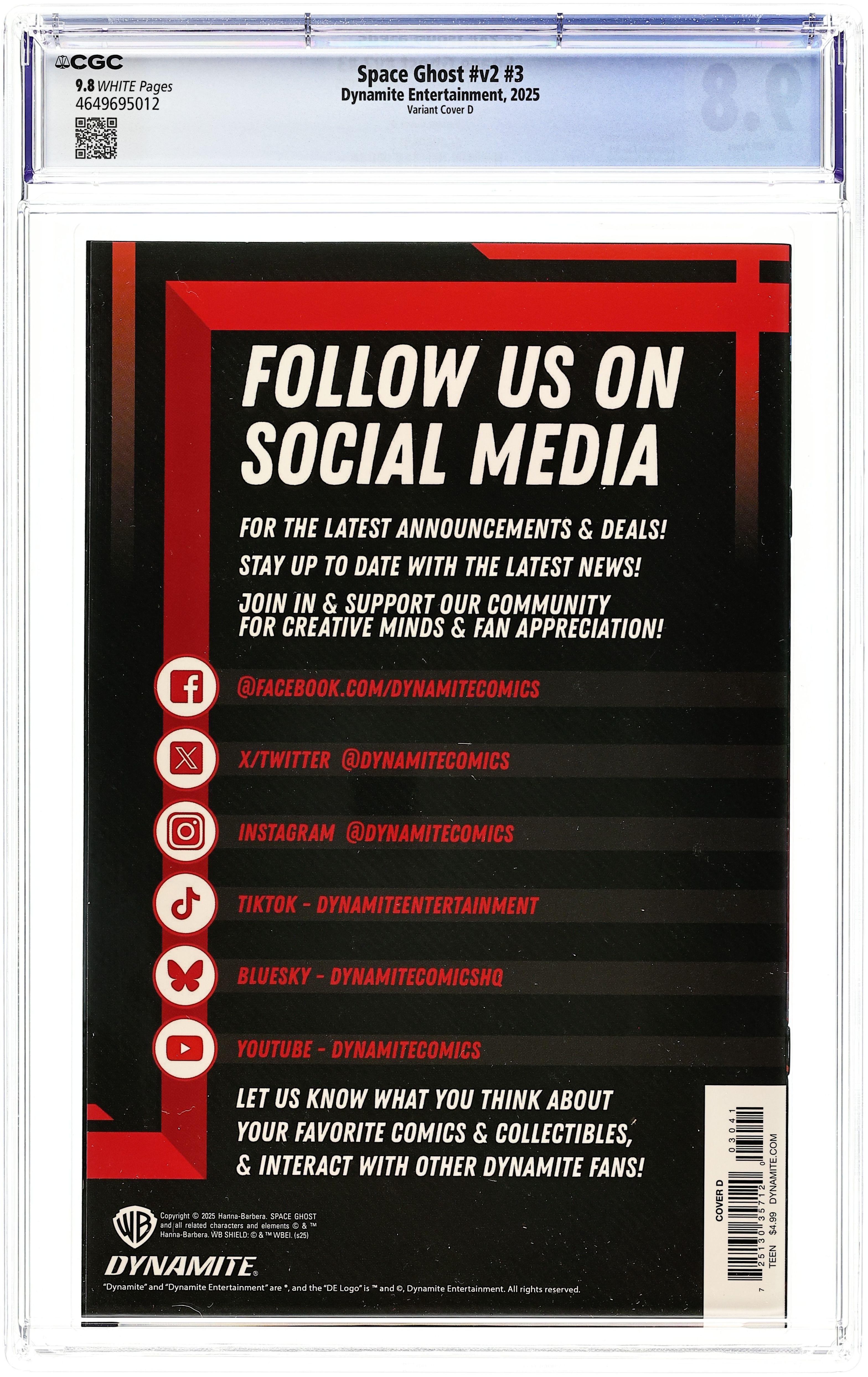 Published 2025 by Dynamite Entertainment.Space Ghost (2024 Dynamite) 11F CGC 9.8