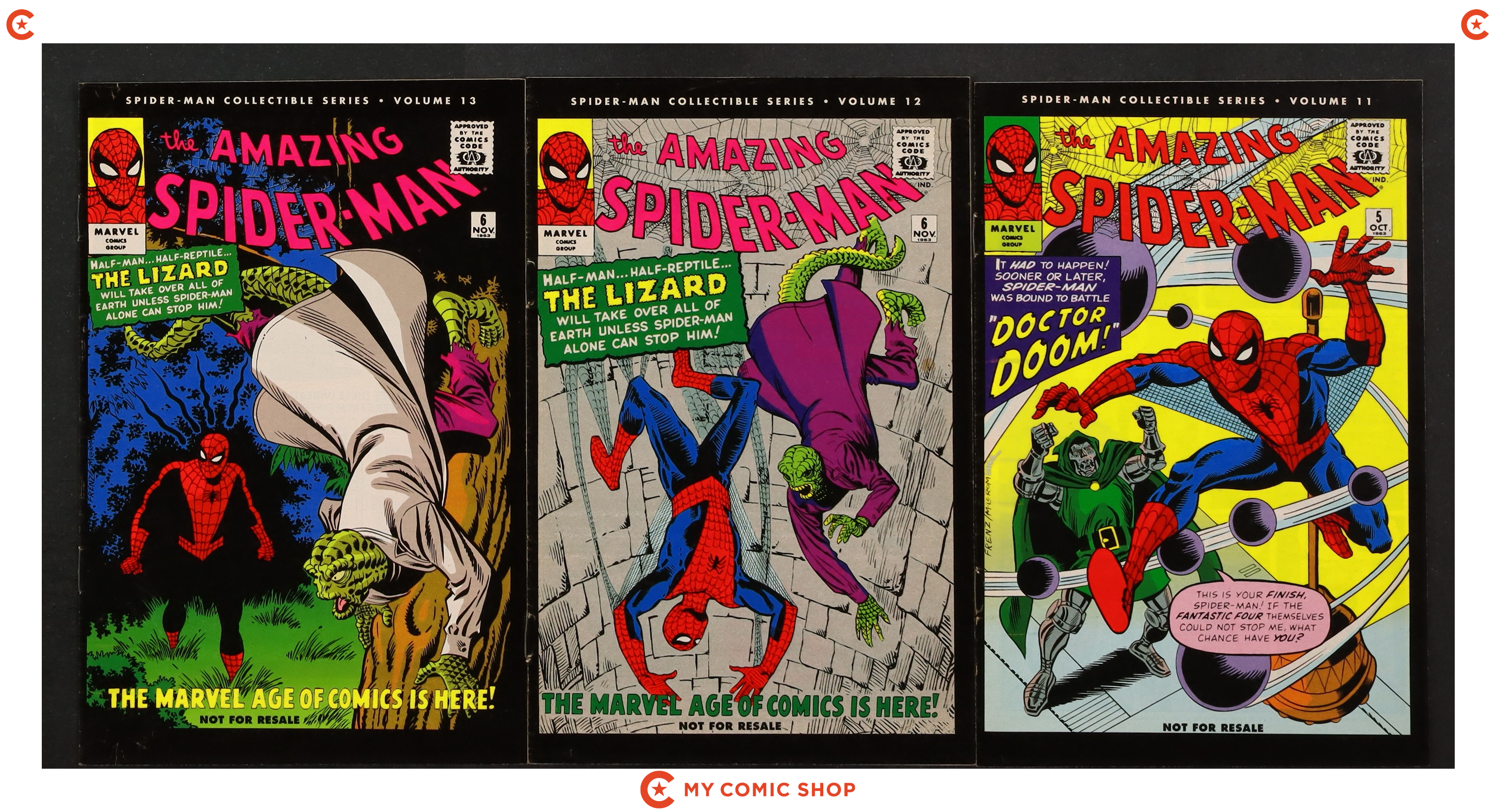 Issues 1GOLD, 2, 3, 6-9, and 12-14 of Spider-Man (1990 Marvel). Most will grade in the VF range with a few grading FN.
