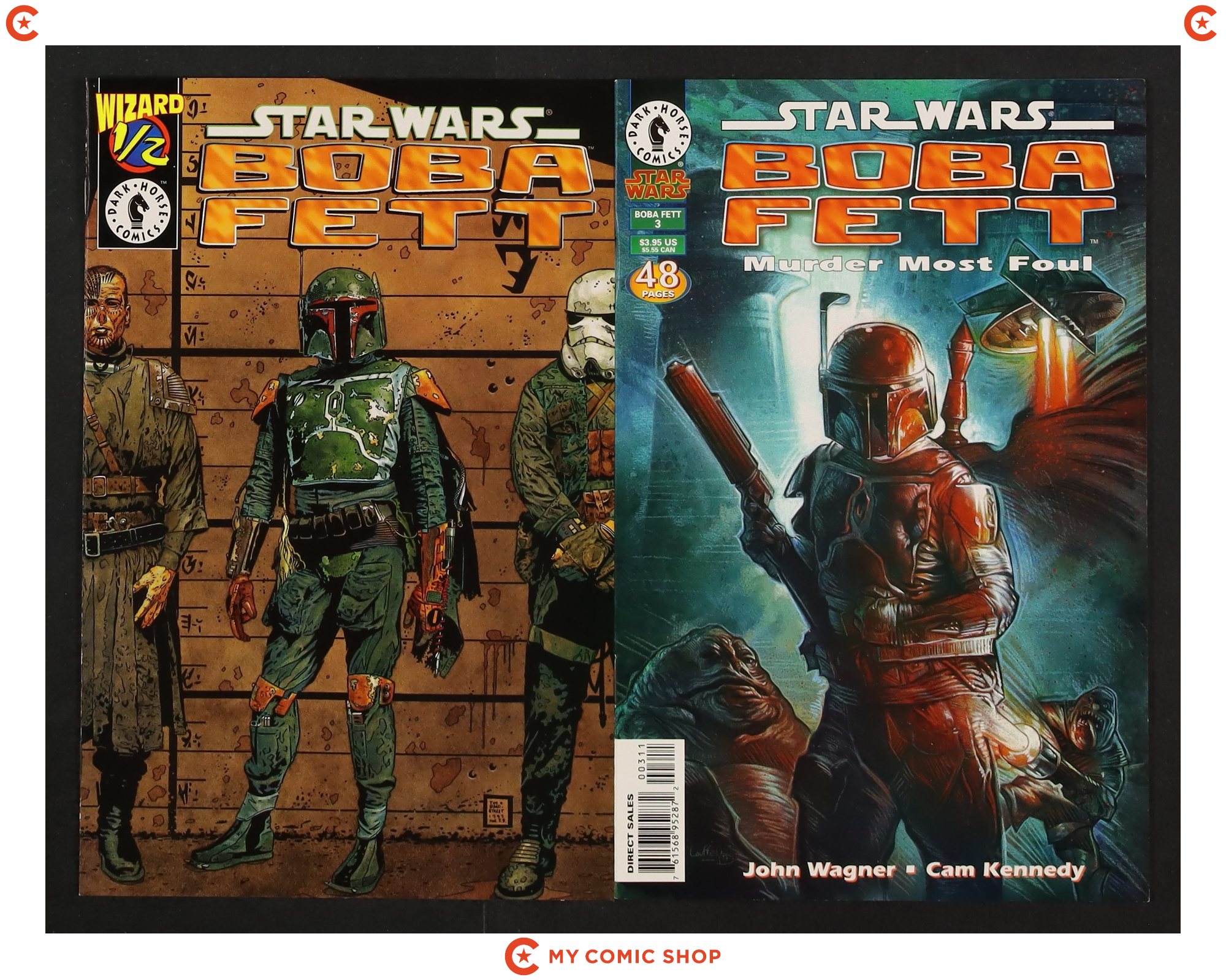 Issue 3 of Star Wars Boba Fett Murder Most Foul (1997), and issue 1 of Star Wars Boba Fett (1997) Wizard 1/2. Most will grade in the VF range.