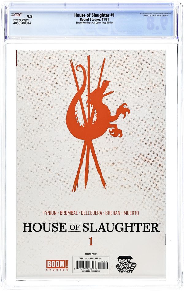 Published Nov 2021 by Boom Studios.House of Slaughter (2021 Boom) 1LCSD CGC 9.8 Lee LCSD Variant 2nd Printing