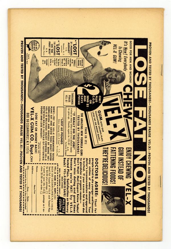 Ends Apr 13 7:39 PM CST Bid History 8 bids Current Bid $88 Your Secret Max Bid If you'd like to bid, please log in or register. Cover by Vince Colletta. Stories and art by Charles Nicholas, Vince Alascia and Sal Trapani. Newly married romance, and all the complications that go with it. Laura marries "animal psychologist" Clyde after a whirlwind courtship, and isn't prepared to meet Corky the spider monkey, and all the other exotic animals he shares his home with. Now there's a plot twist we haven't seen before. City girl Sue marries country boy Don, but feels out of place living on a game reserve in the remote wilderness. Edith wants to marry Howard, but his mother doesn't approve. Afraid; On a Pedestal; Wilderness Wife; Mother's Decision. 32 pages, Full Color. Cover price $0.10.