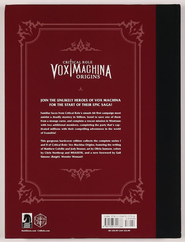 Published Nov 2020 by Dark Horse.Critical Role Vox Machina Origins Series I and II Collection HC (2020 Dark Horse) Library Edition 1-1ST VF 8.0