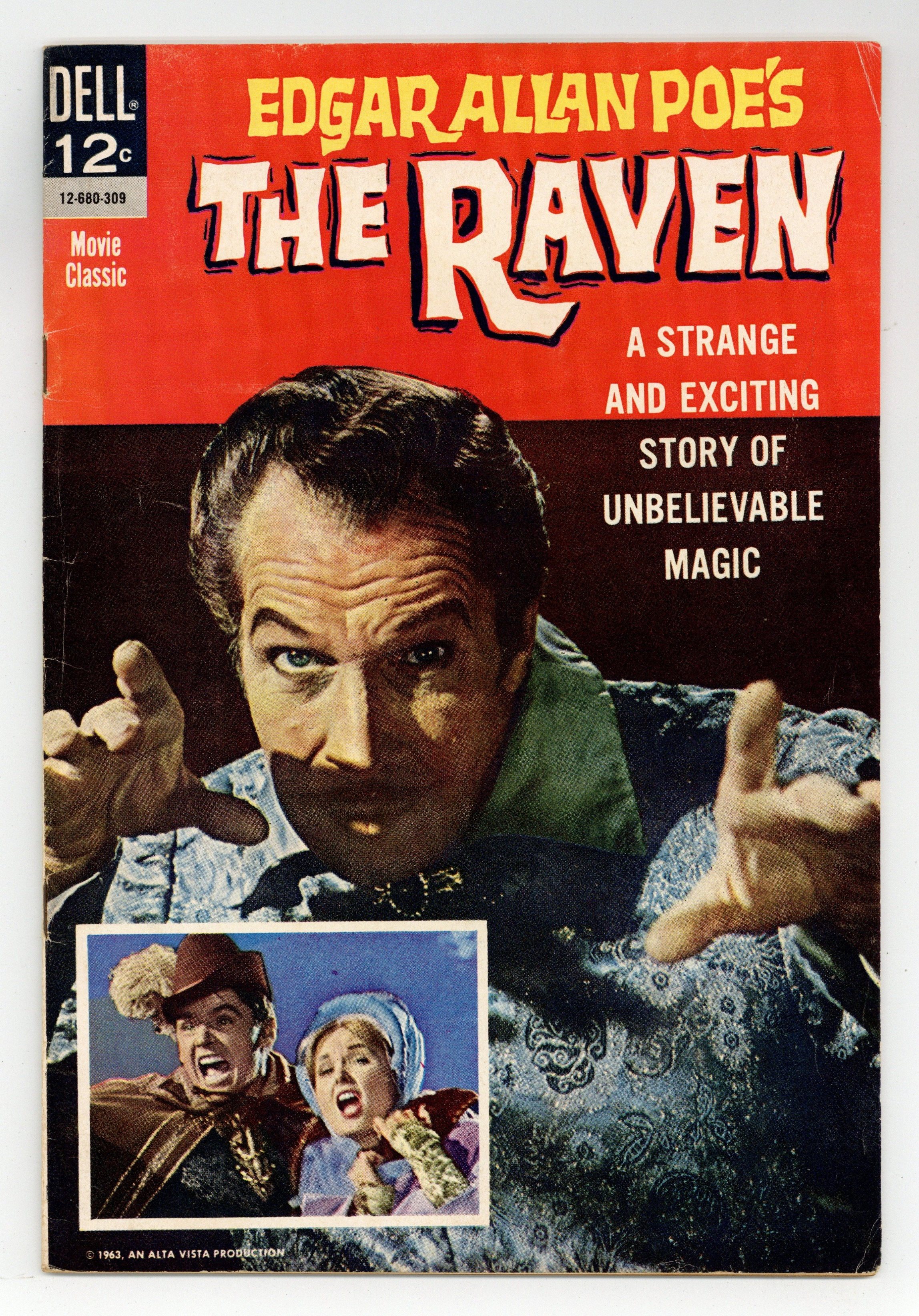 Ends Feb 23 9:00 PM CST Bid History 6 bids Current Bid $10 Your Secret Max Bid If you'd like to bid, please log in or register. Photo cover features Vincent Price, Jack Nicholson and Hazel Court. Story by Don Segall, based on the screenplay by Richard Matheson. Art by Frank Springer. Cover number is #12-680-309. Dell Movie Classics presented comics based on Hollywood films (not all of them classics). This issue is an oddity, a comic based on a movie by Roger Corman, which was in turn inspired (very loosely) by the classic poem by Edgar Allan Poe. A talking raven leads a retired sorcerer into a confrontation with a rival wizard. The original film starred Vincent Price, Peter Lorre, Boris Karloff and a young Jack Nicholson. Plus an article about the legendary stage magician Robert Houdin. 32 pages, Full Color. Cover price $0.12.