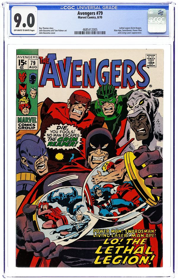 Tags: Marvel Legacy Numbering: Avengers (part 79), AvengersAvengers (1963 1st Series) 79 CGC 9.0