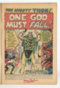Ends Mar 23 9:46 PM CST Bid History 1 bid Current Bid $1 Your Secret Max Bid If you'd like to bid, please log in or register. Cover pencils by Jack Kirby, inks by Vince Colletta. "To Die Like a God!", script by Stan Lee, pencils by Jack Kirby, inks by Vince Colletta; Thor is taken by Sif to Trollheim to recover his hammer; He fights Ulik, releases Orikal, and wins the troll war. Appearances by Odin, Sif, and Ulik. "Tales of Asgard: "The Secret of the Mystic Mountain," script by Stan Lee, pencils by Jack Kirby, inks by Vince Colletta; Thor and companions find the Mystic Mountain of Mogul. Statement of ownership: average print run 488,526; average paid circulation 296,251. 36 pgs., full color. $0.12. Cover price $0.12.