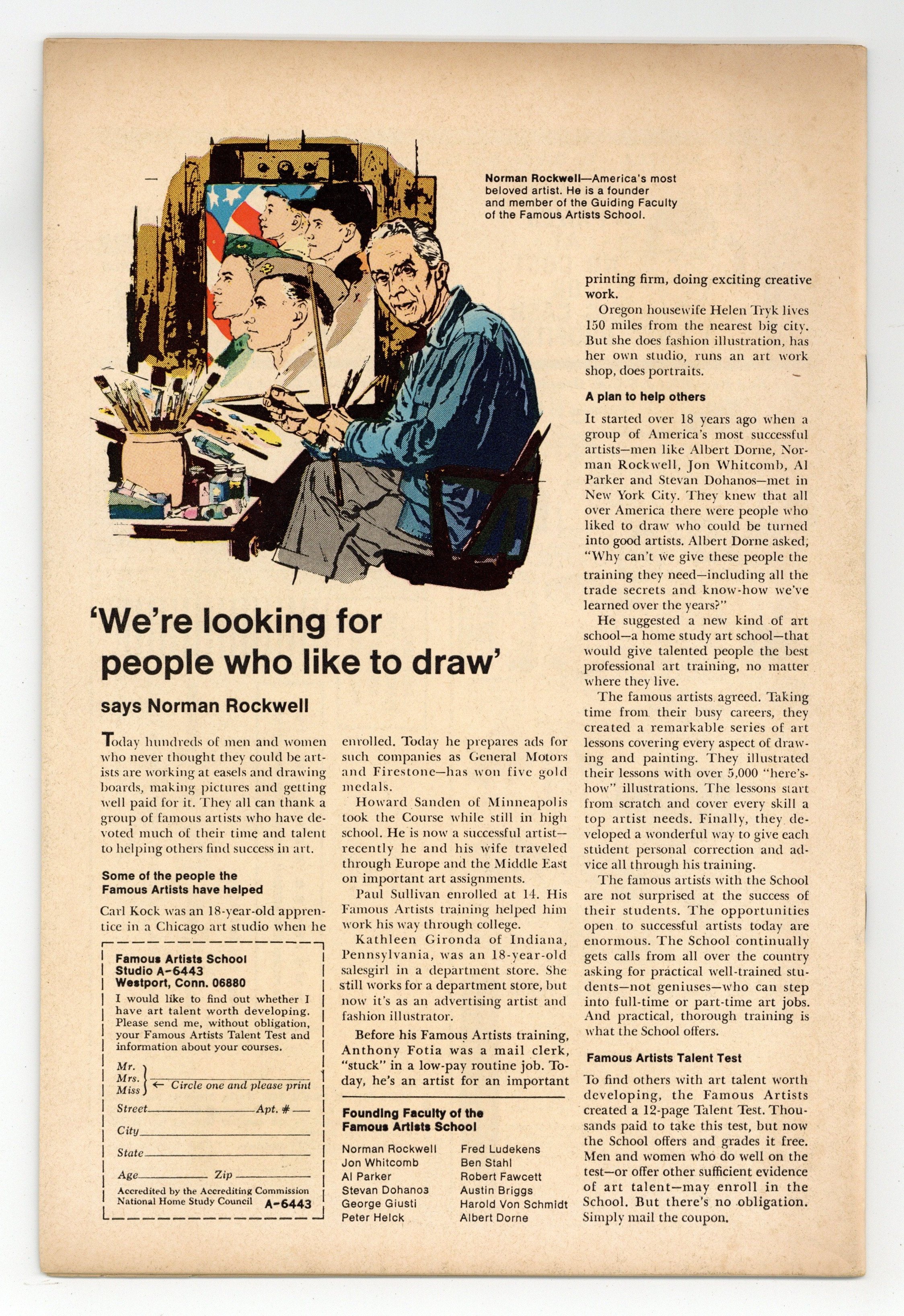 Starts Mar 23 Cover pencils by Jack Kirby, inks by Bill Everett. "The Immortal and the Mind-Slave!", script by Stan Lee, pencils by Jack Kirby, inks by Bill Everett; Jane Foster, kidnapped!; No longer under the protection of Donald Blake, Jane finds herself vulnerable to a blackmailing scheme by billionaire Kornin Krask; Will Thor call on the power of the All-Father to save the woman he loves? Appearance by Odin. Cameos by Balder, Karnilla, and Loki. 36 pgs., full color. $0.15. Cover price $0.15.