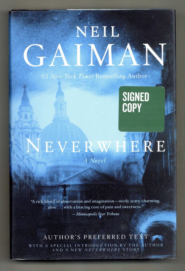 Starts Later today Signed Edition. 1st printing. By Neil Gaiman. Published in 1997, Neil Gaiman's darkly hypnotic first novel, Neverwhere, heralded the arrival of this major talent and became a touchstone of urban fantasy. Neverwhere is the story of Richard Mayhew, a young London businessman with a good heart and an ordinary life, which is changed forever when he is plunged through the cracks of reality into a world of shadows and darkness - the Neverwhere. Over the years, a number of versions were produced both in the U.S. and the U.K. Now, this author's preferred edition of his classic novel reconciles these versions and reinstates a number of scenes cut from the original published books, including the special Neverwhere tale, "How the Marquis Got His Coat Back." Hardcover, 6-in. x 9-in., 368 pages, Text Only. Cover price $26.99.