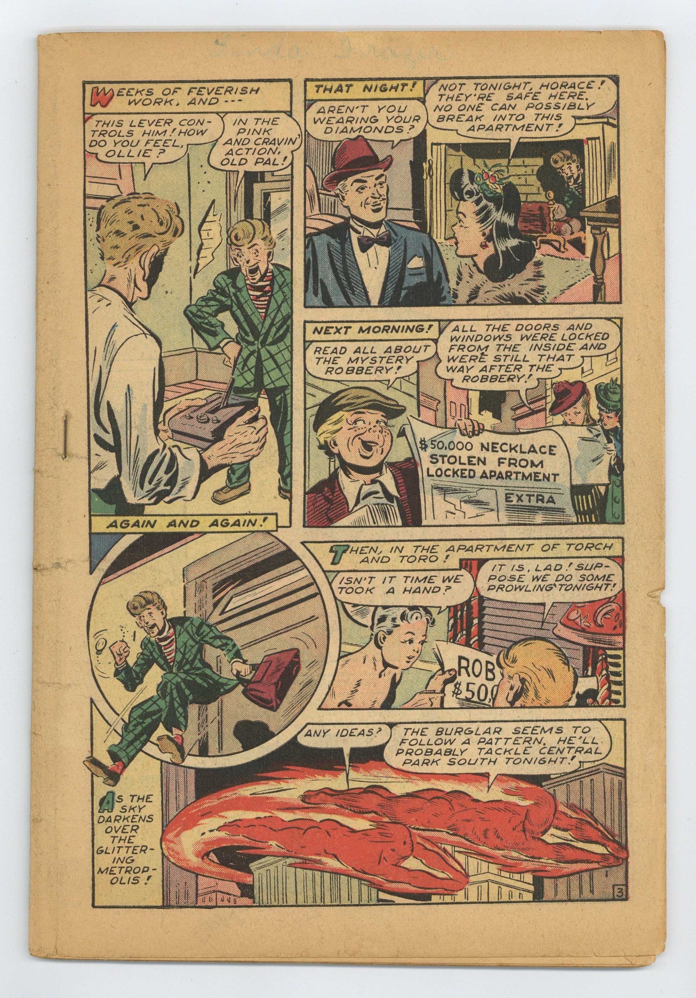 Ends Apr 13 8:37 PM CST Bid History 15 bids Current Bid $890 Your Secret Max Bid If you'd like to bid, please log in or register. Cover art by Alex Schomburg. The Human Torch untitled story (with the Timely staff), script and art by Carl Burgos. Sub-Mariner untitled story, script and art by Carl Pfeufer. The Beast of Cactus Canyon starring Vision, pencils by Syd Shores, inks by Al Gabriele. The Curse of Tutkenamen by Mickey Spillane. Exposed! The Jap Invaders starring Patriot, art by Al Fagaly. Dr. Watson Makes Monkeys Out of the Japs starring Terry Vance, art by Bob Oksner. In His Tunnel to China starring Jimmy Jupiter, script and art by Ed Robbins. The Curse of Professor Torture starring Angel. 68 pages. Cover price $0.10.