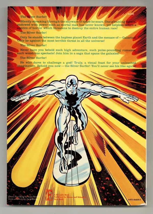 Starts Feb 2 1st printing. Written by Stan Lee. Art by Jack Kirby. Painted cover by Earl Norem (based on sketch by Jack Kirby). The Silver Surfer is the only thing standing in the way of Earth and total annihilation at the hands of Galactus. Softcover, 130 pages, full color. This graphic novel marks the last collaboration between the architects of the Marvel Universe and the godfathers of Modern Day Comics - Stan Lee and Jack Kirby. Cover price $4.95.