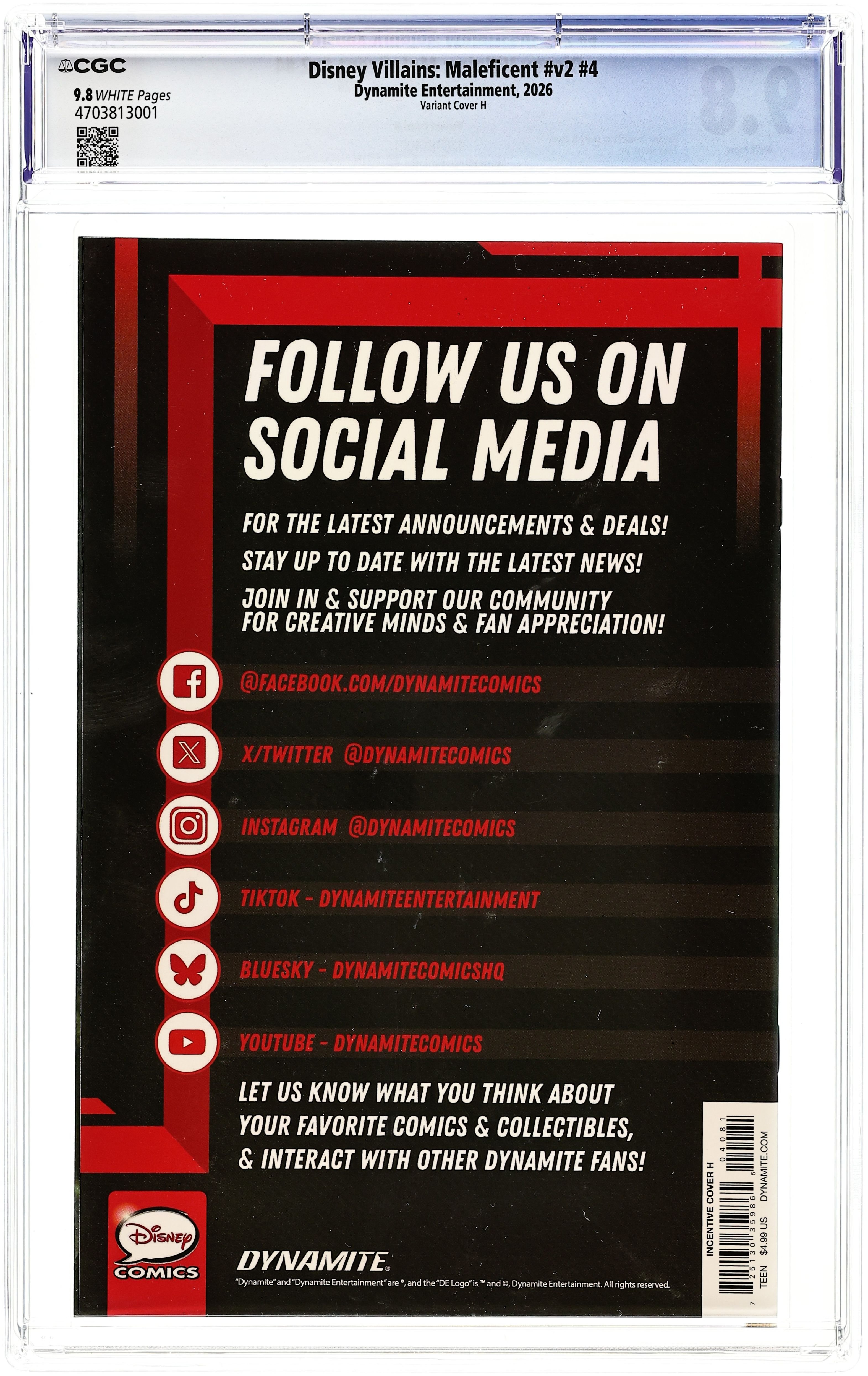 Tags: DisneyPublished Feb 2026 by Dynamic Entertainment.Disney Villains Maleficent (2025 Dynamite) 4H CGC 9.8