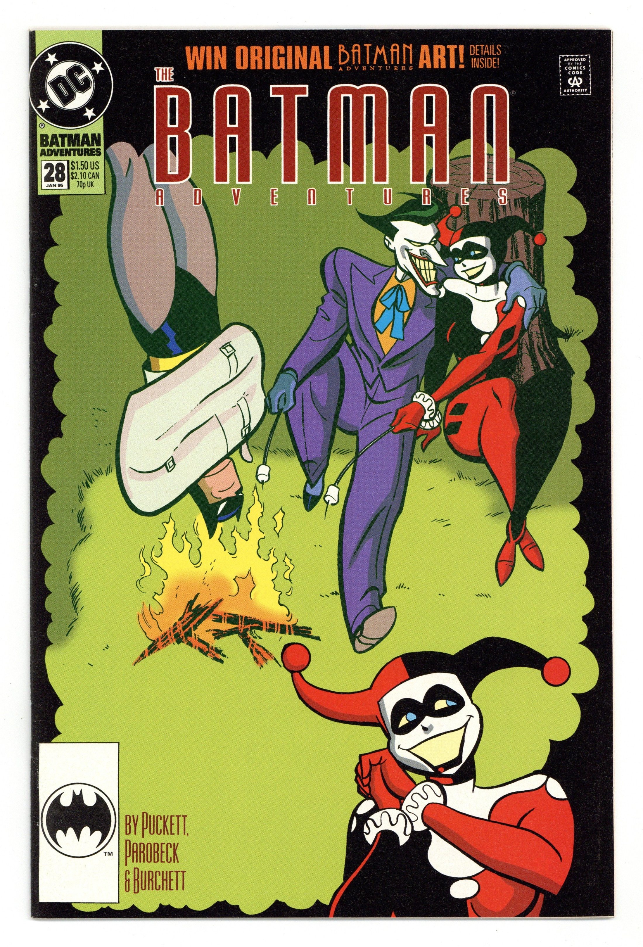 2nd Printing (Batlogo UPC). "Twelve Days of Madness." Gotham City councilmen are going crazy. Dr. Heimlich attempts to treat the Joker's mental illness. Harley Quinn guest stars in this madcap tale. Based on Batman The Animated Series. Script by Kelley Puckett, pencils by Mike Parobeck, inks by Rick Burchett. Cover by Parobeck. Cover price $1.50.