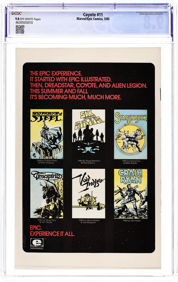 Published Mar 1985 by Marvel/Epic.Coyote (1983) 11 CGC 9.8