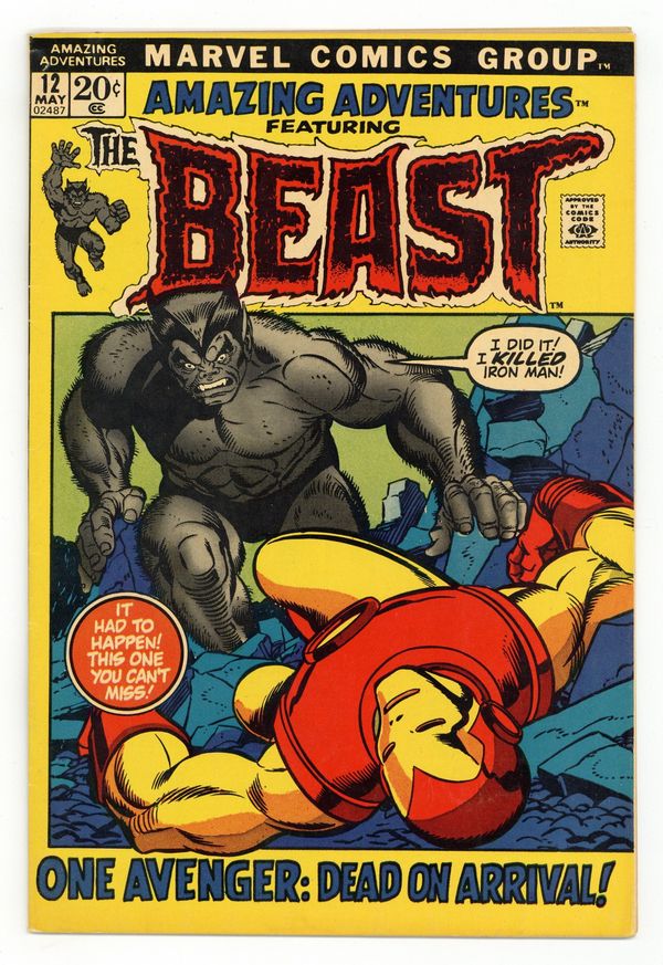 Starts Feb 23 Cover pencils by Gil Kane, inks by Joe Sinnott. "Iron Man: D.O.A.", script by Steve Englehart, pencils by Tom Sutton, inks by Mike Ploog; The military is out looking for the Beast in connection with the death of Carl Maddicks, scientist working for the Brant Corporation, and unknown to everyone secretly giving secrets to a enemy organization; While hiding out, Beast reflects back on the events that led to him turning into a hairy beast and how he cannot change back to his normal form; As he is hiding, the Beast is contacted telepathically by Marvel Girl and Professor X; Mastermind, Unus the Untouchable, and the Blob appear. 36 pgs, full color. $0.20. Cover price $0.20.