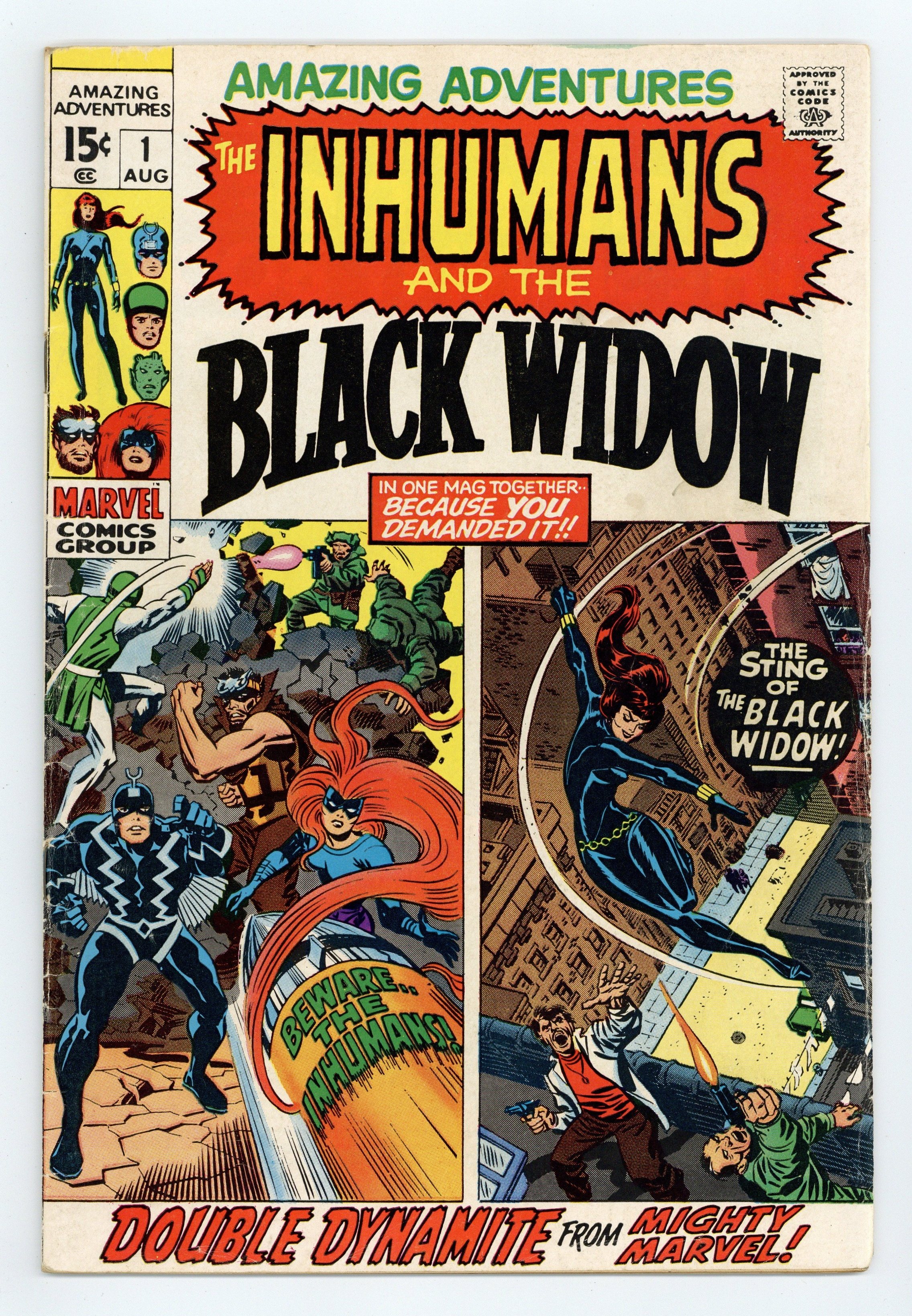 Starts Mar 2 Cover pencils by Jack Kirby (Inhumans) and John Romita (Black Widow), inks by John Romita. "Beware... the Inhumans!", script by Jack Kirby, pencils by Jack Kirby, inks by Chic Stone; Two missiles are shot at the Inhumans; The second one is destroyed just before it hits and the wreckage points to the Fantastic Four as the ones firing it. "Then Came... the Black Widow," script by Gary Friedrich, pencils by John Buscema, inks by John Verpoorten; Black Widow, bored by her civilian life, gets a new costume. 36 pgs, full color. $0.15. Cover price $0.15.