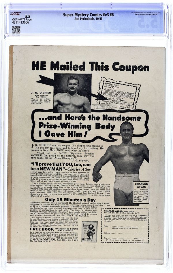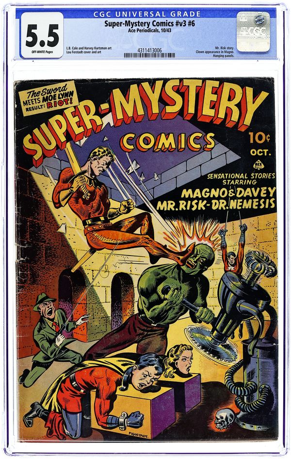 Published Oct 1943 by Ace Magazines.Super Mystery Comics (1940) Vol. 3 #6 CGC 5.5