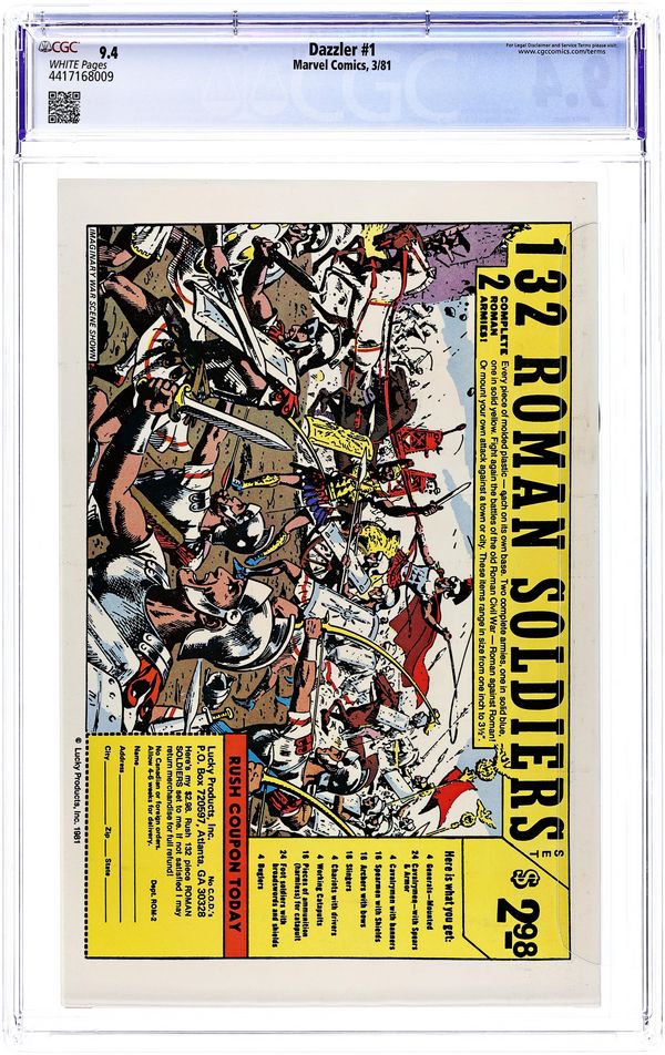 Starts Feb 16 Corrected version with pages 24 & 25 printed in color. Dazzler origin in "So Bright This Star." Script by Tom DeFalco, pencils by John Romite Jr., inks by Alfredo Alcala. Guest appearances by Spider-Man, the X-Men (Storm, Wolverine, Colossus, Nightcrawler, and Sprite), the Avengers (Hawkeye, the Beast, Iron Man, the Wasp, and Captain America), and the Enchantress. This issue was not sold on newsstands, but available only from direst-sale outlets. Bob Larkin painted cover. Cover price $0.50.