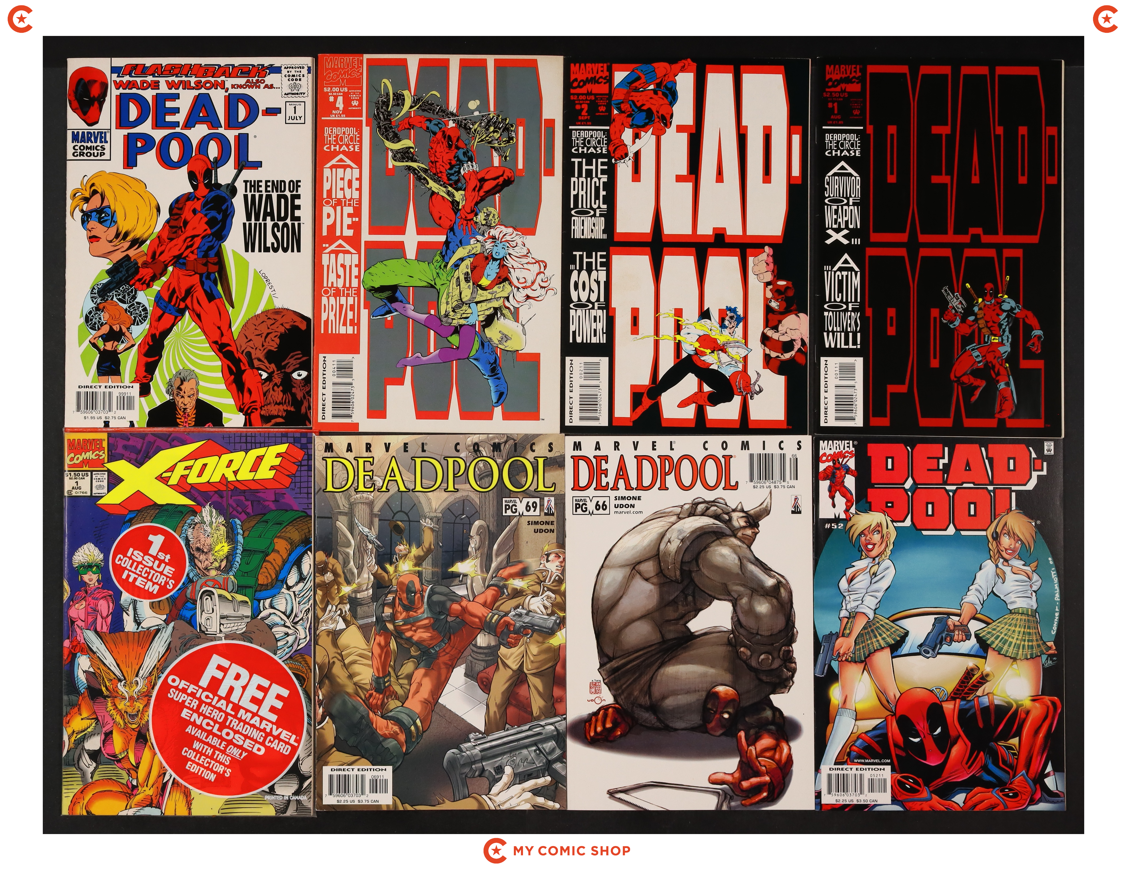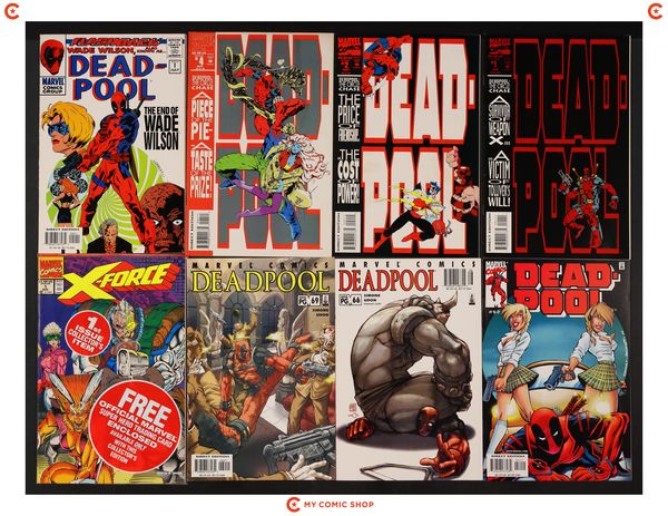 Issues 1, 2, and 4 of Deadpool The Circle Chase (1993); 2-4 of Deadpool (1994 Mini Series); 58 and 62 of Deadpool (1997 1st Series); 1 of Daredevil Deadpool 1997 Annual; and 0 of Deadpool (1997 1st Series) Wizard. Most will grade in the VF range with some grading FN.