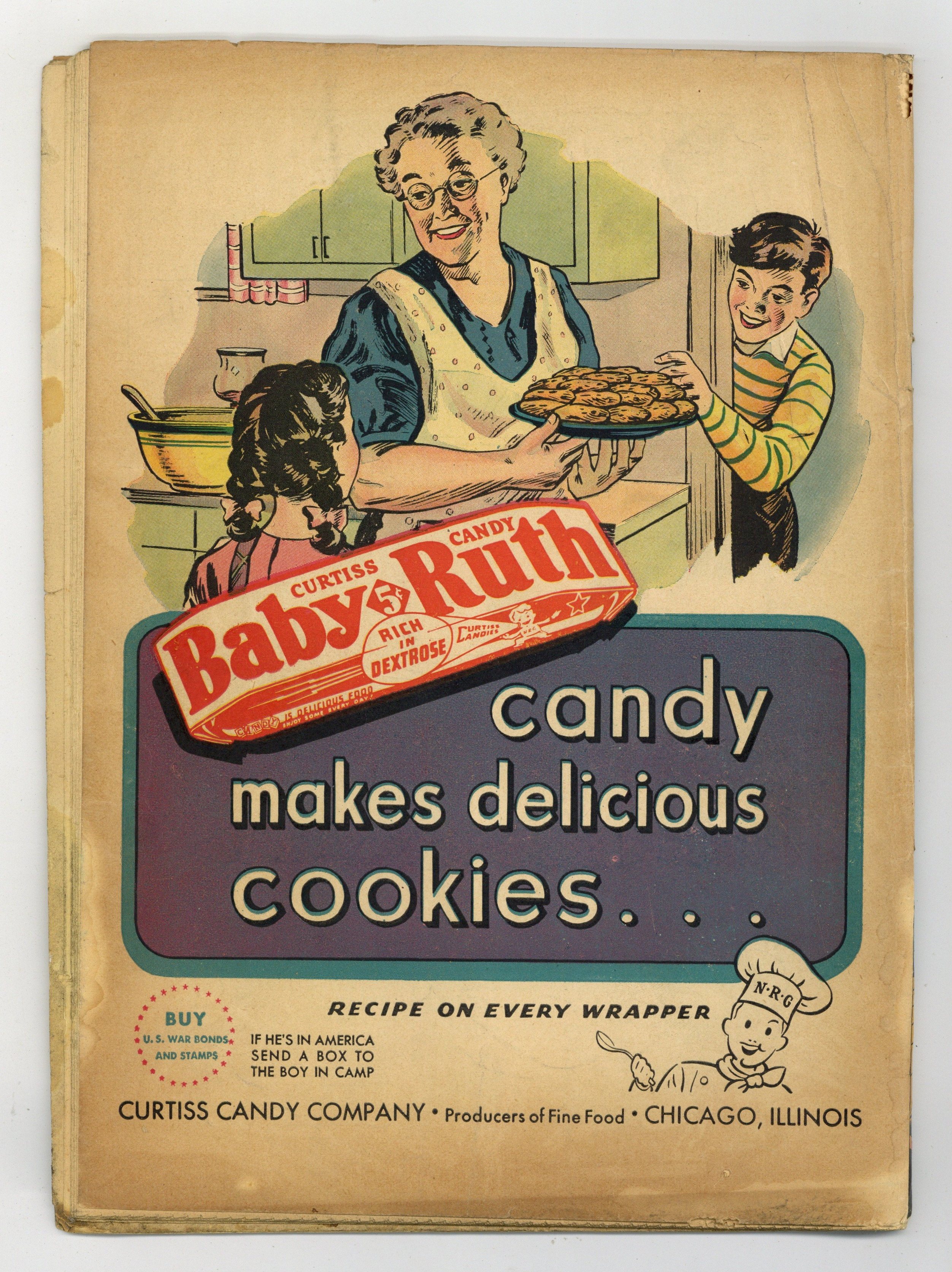 Starts Apr 4 Cover by Dick Sprang. "The Duped Domestics!", script by Alvin Schwartz, pencils by Bob Kane, inks by Jerry Robinson; Alfred is in love, and to impress the fair maid he has designs on, he poses as the Batman, unaware that his "girl" is actually the Catwoman in disguise! "Dick Grayson, Telegraph Boy!", script by Bill Finger, pencils by Jack Burnley (as Bob Kane), inks by Jerry Robinson; A cleaver gangster and his gang use a powerful telescope to look in on various places of interest, like banks and museums, and discover which places they can carry out profitable heists. 1-page Private Pete story by Henry Boltinoff. "Conversational Clue!", script by Mort Weisinger, art by Jerry Robinson; Overhearing an accidental conversation in the library, Alfred decides to follow it up and it leads him into a life and death situation for him unless he can put the practices into play that he has learned from Batman. 1-page Judge Jollopy story by Jack Farr. Waste Paper Has Become a Weapon of War! public service announcement, script by Jack Schiff, art by Jerry Robinson. "Deduct a Murder" text story by Walt Cochrane. "The Cavalier Rides Again!", script by Bill Finger, pencils by Jack Burnley, inks by Charles Paris; The Cavalier, still smarting from his previous encounter with the Caped Crusaders, taunts his foes once more as he seeks to add the Meerbrandt model of the Magi Diamond to his "Chamber of Prizes.". 52 Pages, Full Color. Cover price $0.10.