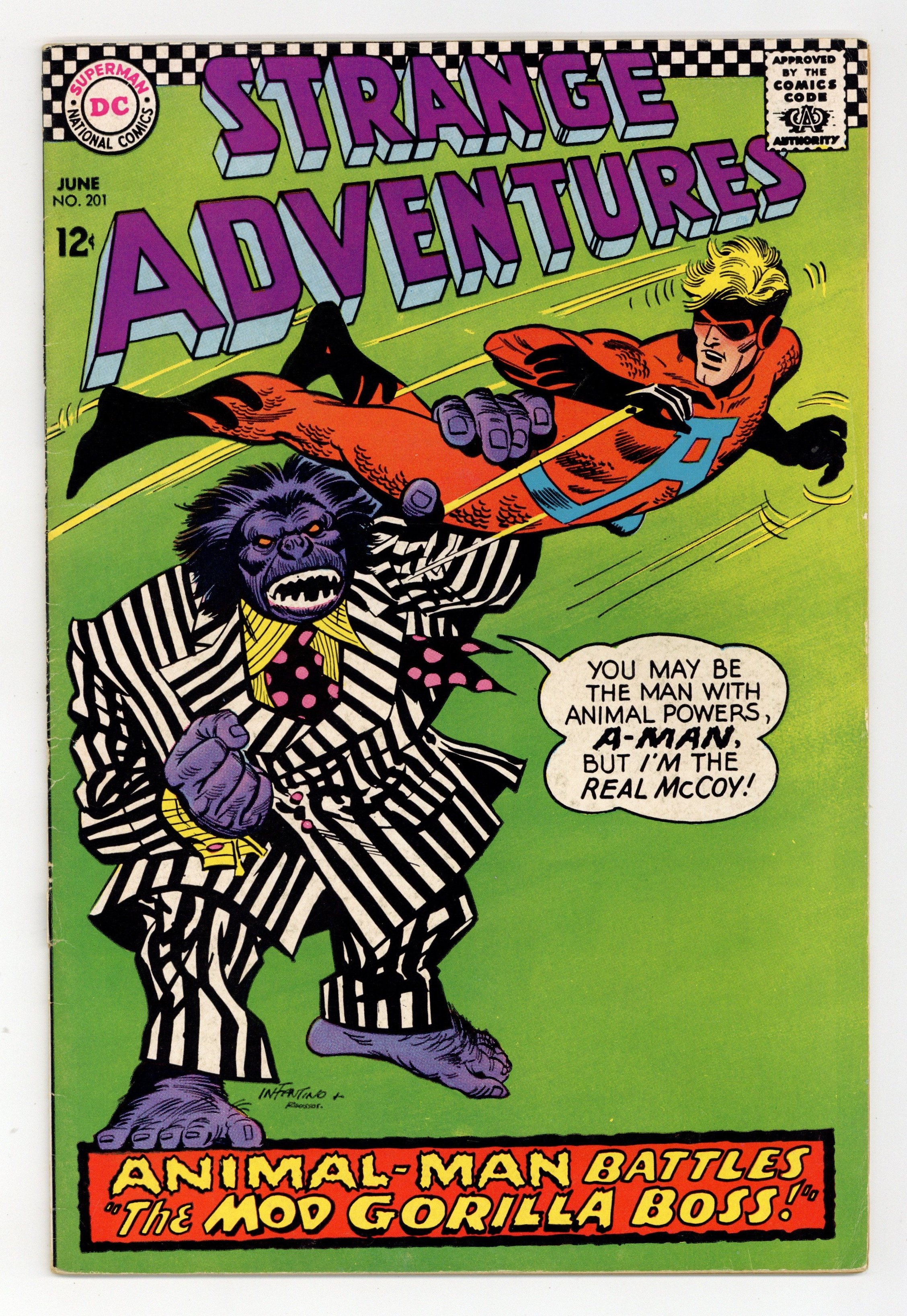 Starts Feb 2 Animal Man stars in "The Mod Gorilla Boss!" (12 pages); and "The Cackling Conjurer!" Carmine Infantino cover pencils, George Roussos cover inks. 36 Pages, Full Color. Cover price $0.12.