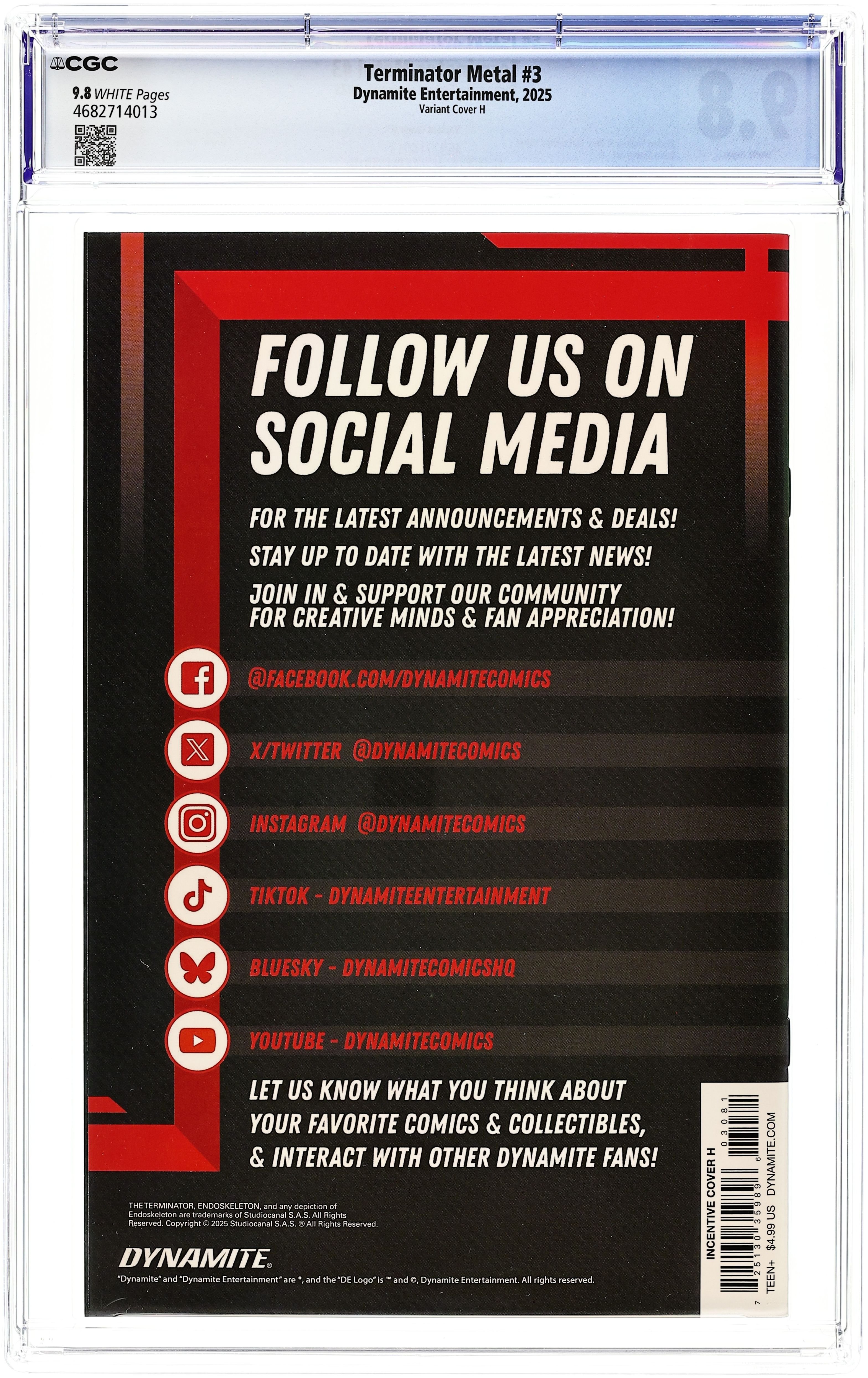 Tags: TerminatorPublished 2025 by Dynamite Entertainment.Terminator Metal (2025 Dynamite) 1U CGC 9.8