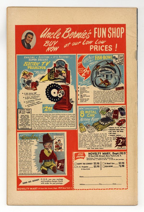 Ends Apr 13 9:51 PM CST Bid History no bids Minimum Bid $1 Your Secret Max Bid If you'd like to bid, please log in or register. Painted cover by Allen Anderson. Stories and art by Everett Raymond Kinstler, Dan Barry, Bob Powell, Howard Nostrand, George Tuska, Ed Silverman, Martin Epp, and John Giunta. Classic 1950s science-fiction and horror tales from Ziff-Davis. John falls in love with Tania, a mermaid, after she saves him from drowning, in a story with early art by future Flash Gordon artist Dan Barry. Ben's soul seeks a new body to inhabit, in one of two stories this issue with art by comics legend Bob Powell. Bull, meanwhile, finds his soul split into two bodies, in a story with early art by comics legend George Tuska. Plus a one-pager by Everett Raymond Kinstler. Classic painted cover of a mermaid vs. a sea monster by Allen Anderson. Letter in Black; Princess of the Sea; The Soul of Benjamin Sprague; The Mind Reader; Death x 2 = 0; The Shadow on the Screen; Space Age Glass. 32 pages, Full Color. Cover price $0.10.