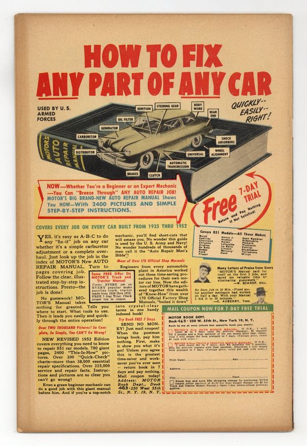Ends Apr 13 8:16 PM CST Bid History no bids Minimum Bid $1 Your Secret Max Bid If you'd like to bid, please log in or register. Pre-Code horror comics from Ajax-Farrell and their anonymous talents. A dying man suspects shenanigans after learning his doctor is sleeping with his wife. Richard's new wife is repeatedly possessed by the spirit of his departed lover. The Devil Collects; Terror on Location; Fear of the Witch; Dead on Arrival; Death Is the Jury! 36 pages, Full Color. Cover price $0.10.