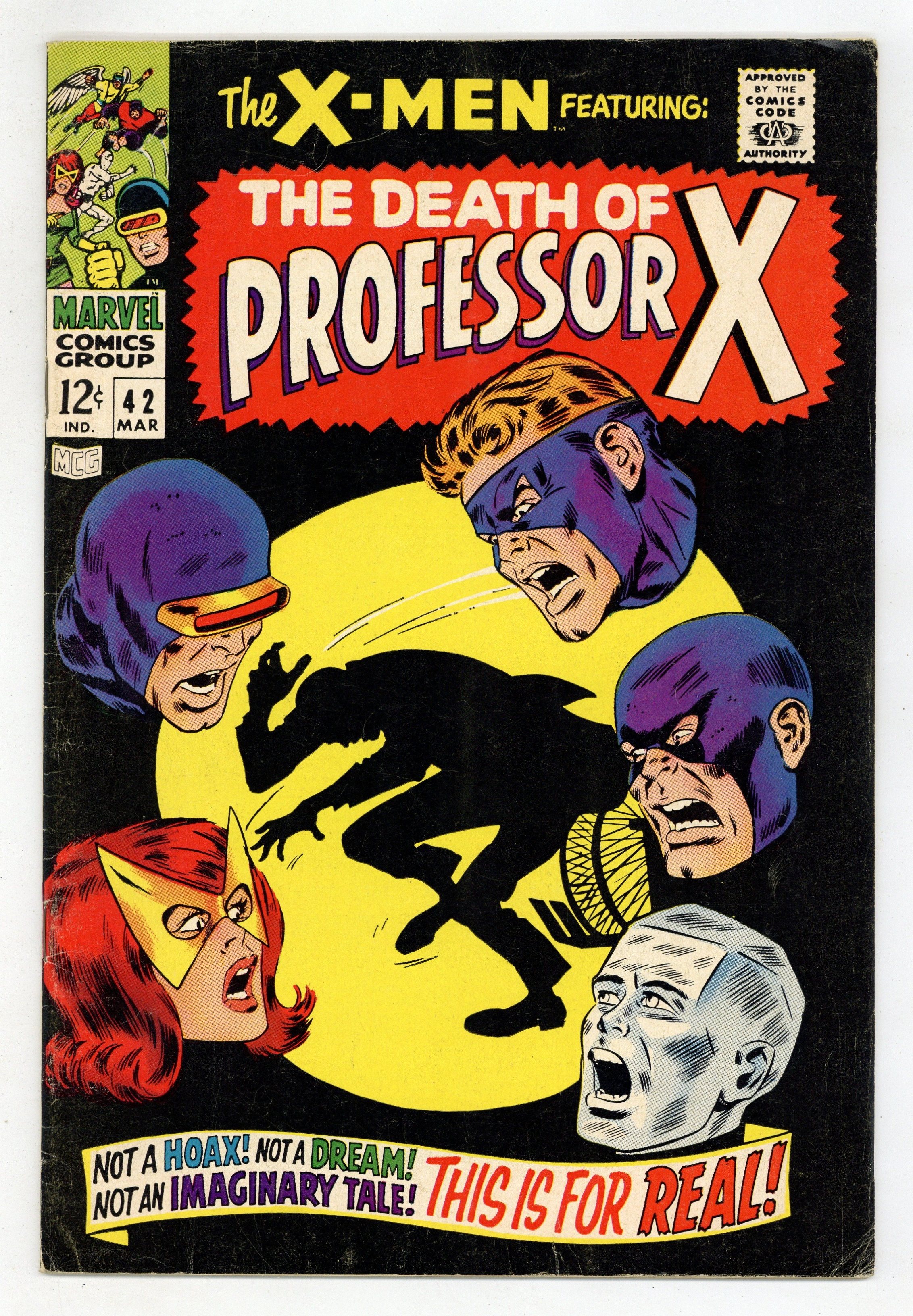Cover pencils by Werner Roth, inks by Dick Ayers. I, Lucifer..., script by Roy Thomas, pencils by Werner Roth (as Jay Gavin), inks by Dick Ayers; Story of how Prof. X lost use of legs. Continued in X-Men 21. Letter to the editor from comic artist Frank Brunner. 36 pgs. $0.12. Cover price $0.12.