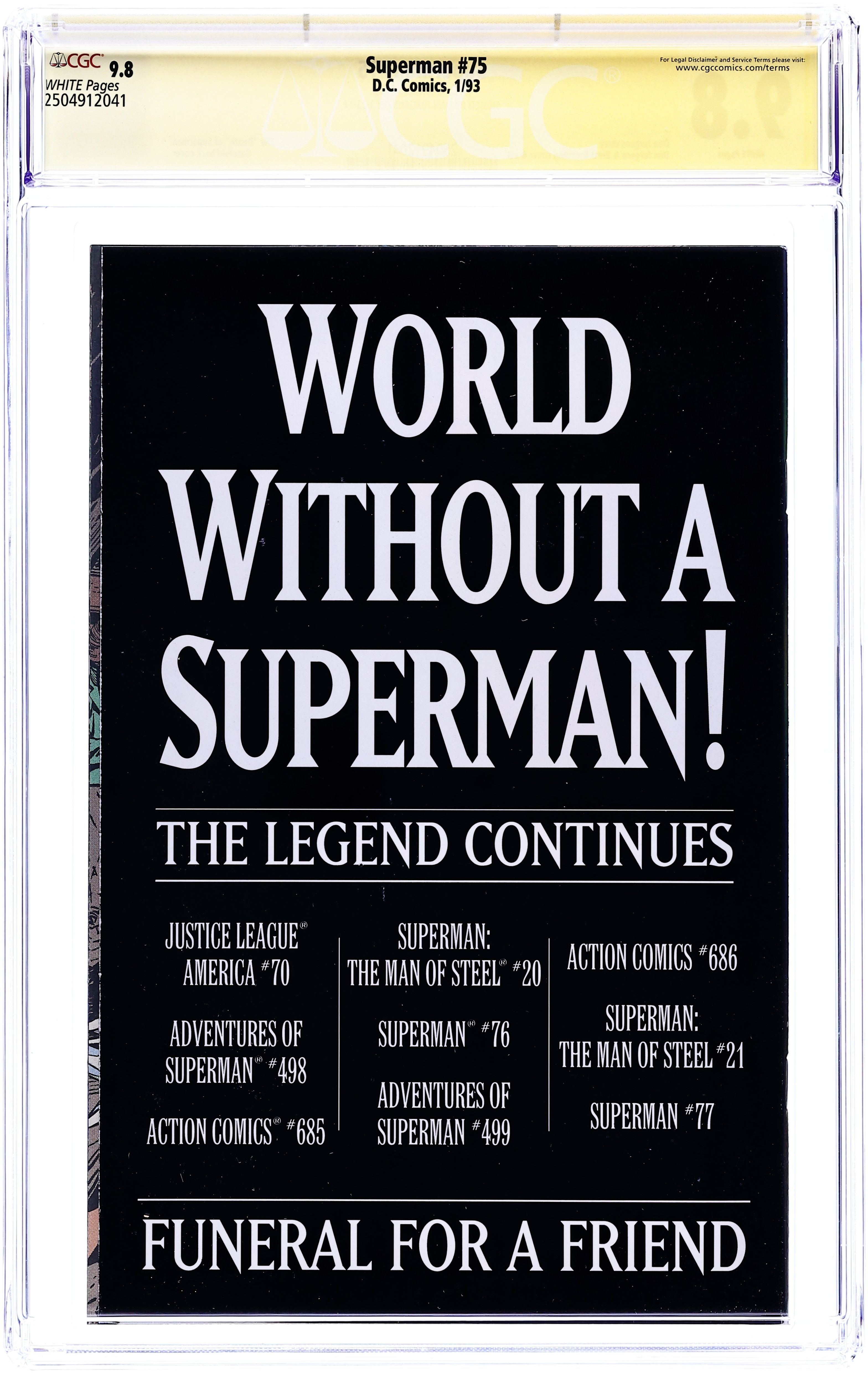 Superman (1987 2nd Series) 75D CGC 9.8 SS Jurgens. Direct Variant 1st Printing