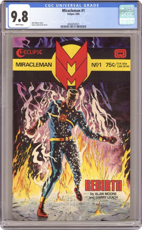 Starts Jan 3 Written by Alan Moore, with art by Gary Leach. Mickey Moran was just a regular bloke with a wife and a job, until one day he *remembered*...that he was Miracleman, a glistening new god with powers far beyond those of mortal ken. He also remembered that, years ago, he and his sidekicks -- Young Miracleman and Kid Miracleman -- were in a horrible accident that left Young Miracleman dead. When Moran goes to see Kid Miracleman to help him piece together his past, our hero finds that his youthful protege has changed...for the worse. Much worse. If you've never read this series, be assured it ranks right up there with Alan Moore's other classic, Watchmen. Cover price $0.75.