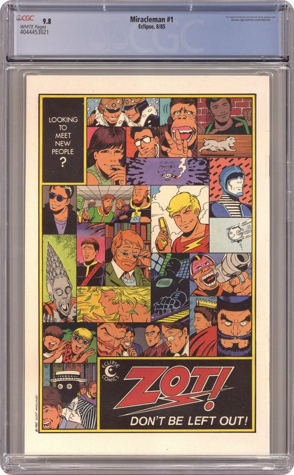 Starts Apr 4 Written by Alan Moore, with art by Gary Leach. Mickey Moran was just a regular bloke with a wife and a job, until one day he *remembered*...that he was Miracleman, a glistening new god with powers far beyond those of mortal ken. He also remembered that, years ago, he and his sidekicks -- Young Miracleman and Kid Miracleman -- were in a horrible accident that left Young Miracleman dead. When Moran goes to see Kid Miracleman to help him piece together his past, our hero finds that his youthful protege has changed...for the worse. Much worse. If you've never read this series, be assured it ranks right up there with Alan Moore's other classic, Watchmen. Cover price $0.75.