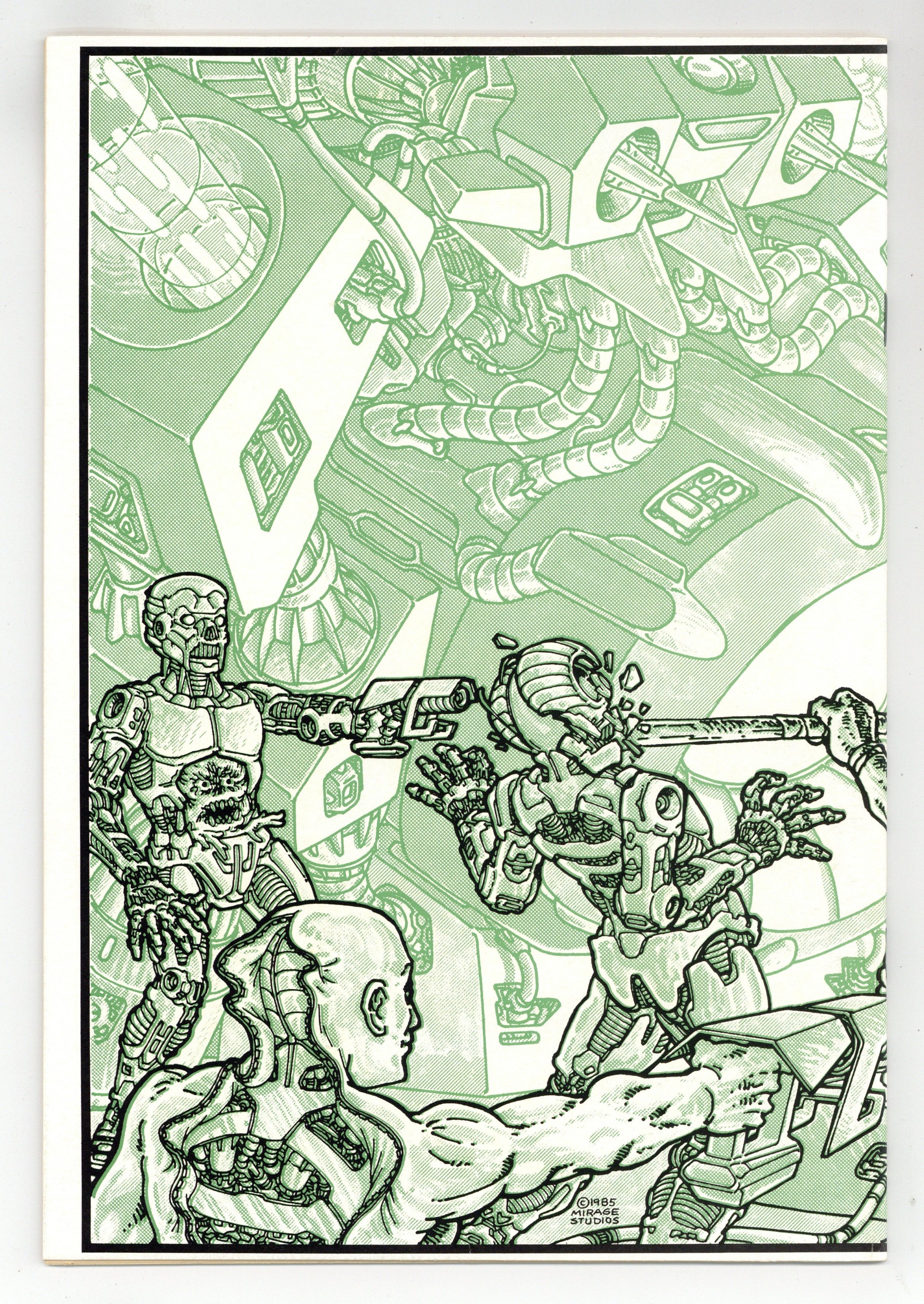Starts Apr 4 First printing. According to Overstreet, this issue has one additional printing, which can be identified as such on the inside cover. The original series that introduced the Turtles to the world. Searching for Splinter, the Turtles encounter the alien androids known as the Utroms. Story, art and cover by Kevin Eastman & Peter Laird. Final issue in magazine format; series continues in comic format as Teenage Mutant Ninja Turtles (1985). Black and white; 40 pages. Cover price $1.50.