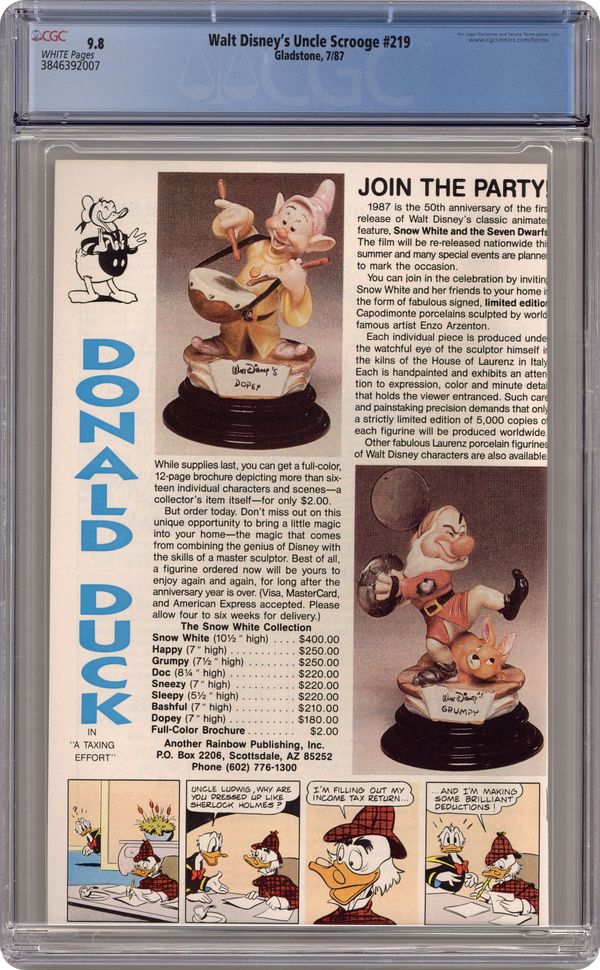 Published Jul 1987 by Dell/Gold Key/Whitman.Uncle Scrooge (1954-2008 Dell/Gold Key/Gladstone/Gemstone) 219 CGC 9.8