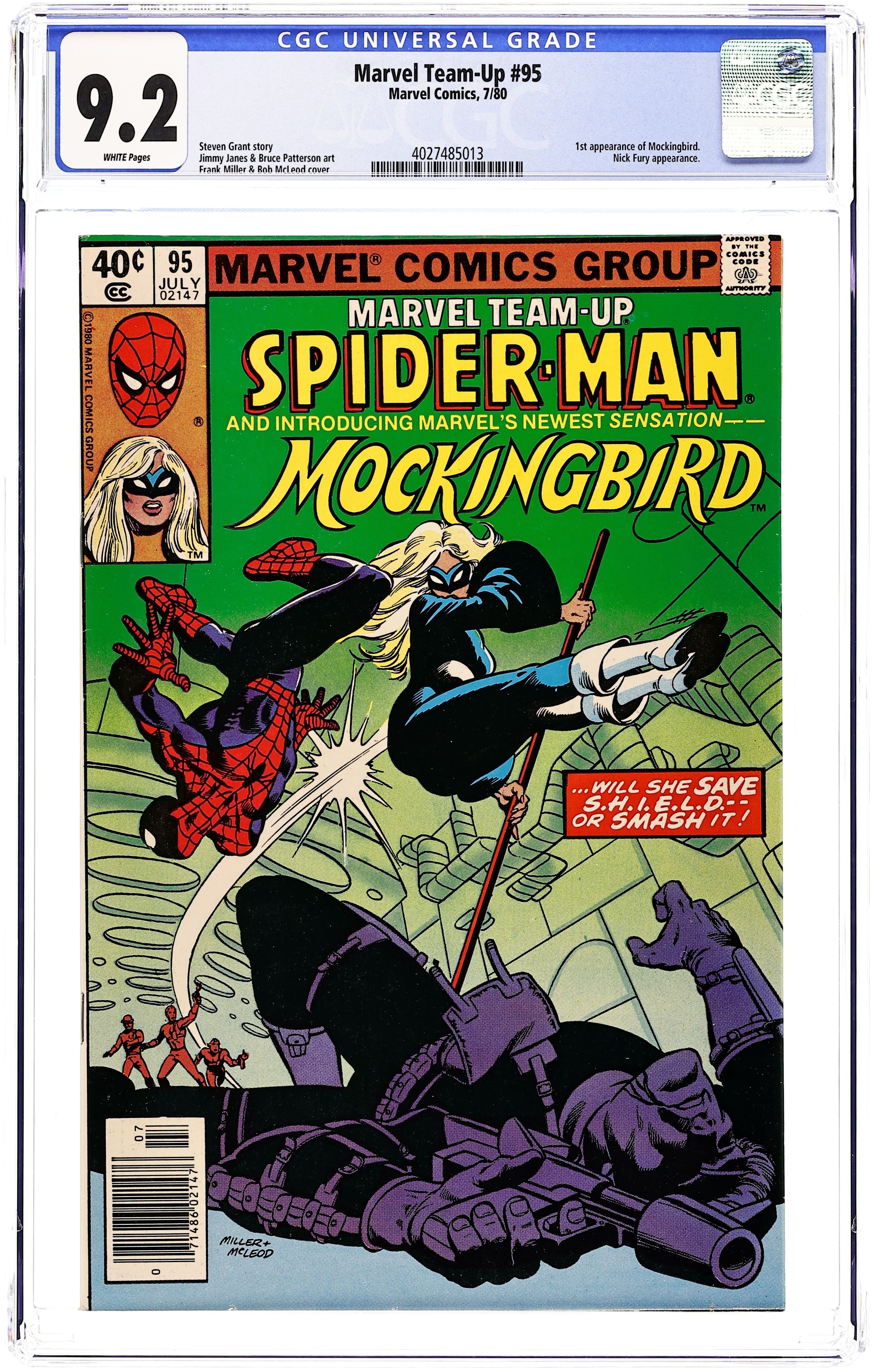 Starts Dec 8 Direct Edition. "And No Birds Sing!" Guest-starring Spider-Man and Mockingbird (1st appearance). Script by Steven Grant. Art by Jimmy James (breakdowns) and Bruce Patterson (finishes). Cover by Frank Miller and Bob McLeod. A rogue SHIELD branch director tricks the web-slinger into believing that Nick Fury's life is in jeopardy! Specifically, from a former SHIELD operative...Barbara Morse! However, Mockingbird is actually trying to save Nick Fury. Will Spider-Man realize that in time? First appearance of Bobbi Morse as Mockingbird. (Notes: After a cameo appearance in Contest of Champions 1, Mockingbird appears next in the first Hawkeye Limited Series published in 1983. The letters page contains a brief essay from Mark Gruenwald about the creation of Mockingbird.) 36 pages. Cover price $0.40.