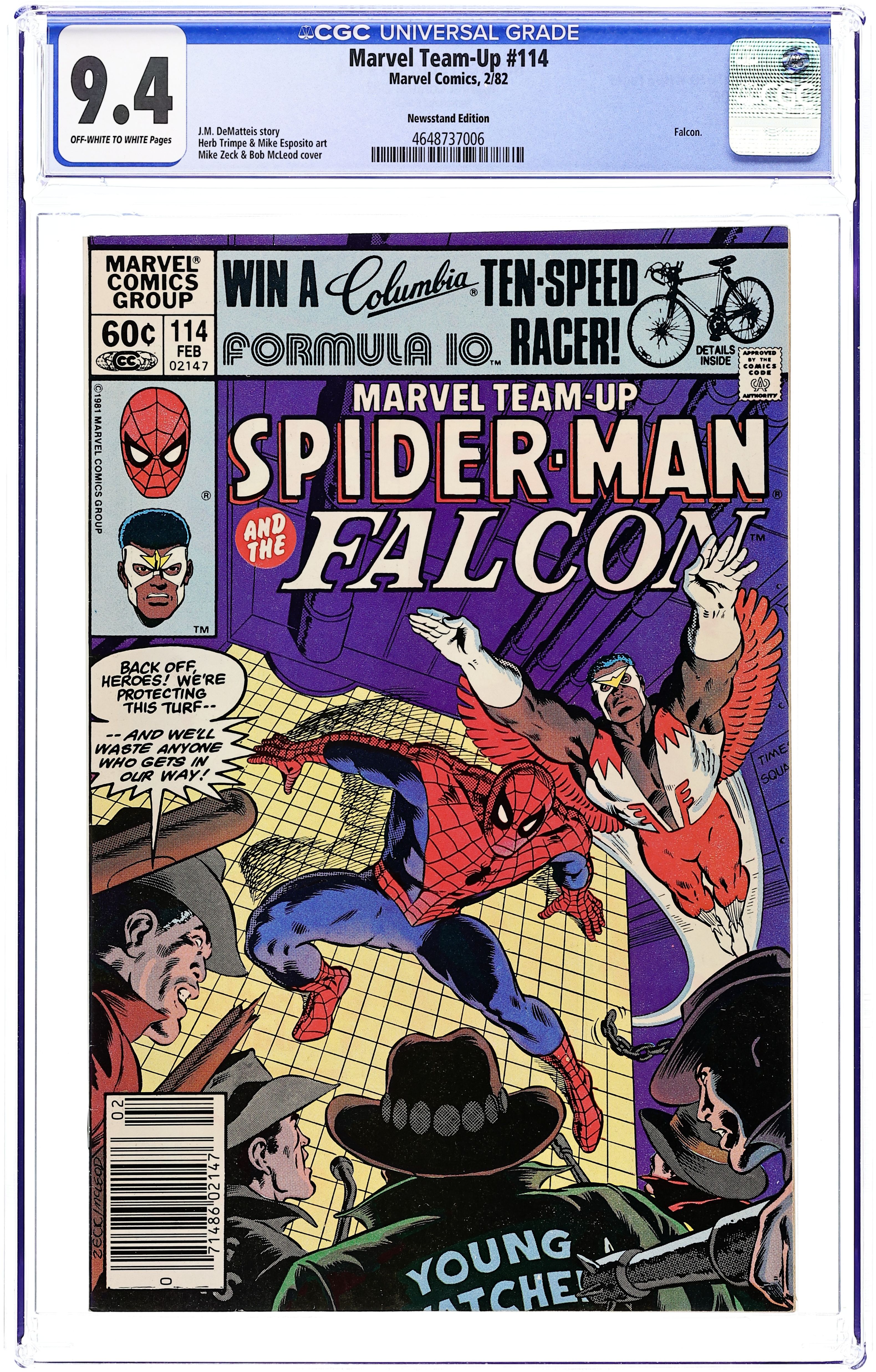 Ends Dec 8 8:55 PM CST Bid History 3 bids Current Bid $6 Your Secret Max Bid If you'd like to bid, please log in or register. Newsstand Edition. "The Heat in Harlem!" Guest-starring Spider-Man and the Falcon. Script by J.M. DeMatteis. Pencils by Herb Trimpe. Inks by Mike Esposito. Cover by Mike Zeck and Bob McLeod. Peter Parker runs afoul of a teenage civilian watchdog group in Harlem. So the web-slinger travels uptown to challenge the "Young Watchers." But Harlem is the well-known stomping ground of another superhero...Sam Wilson (aka the Falcon)! The Falcon isn't too thrilled about the wall-crawler operating on his turf, but the former avenger will have to change his tune in order to rescue his nephew, Jim Wilson, from the Young Watchers and Stone-face! (Note: Stone-face previously appeared in Captain America 171.) 36 pages. Cover price $0.60.