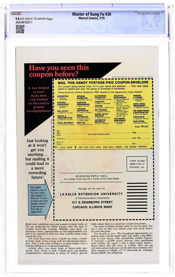 Tags: Marvel Legacy Numbering: Master of Kung Fu (part 30), Martial ArtsMaster of Kung Fu (1974 Marvel) 30 CGC 9.4